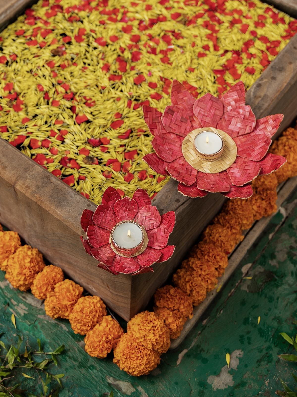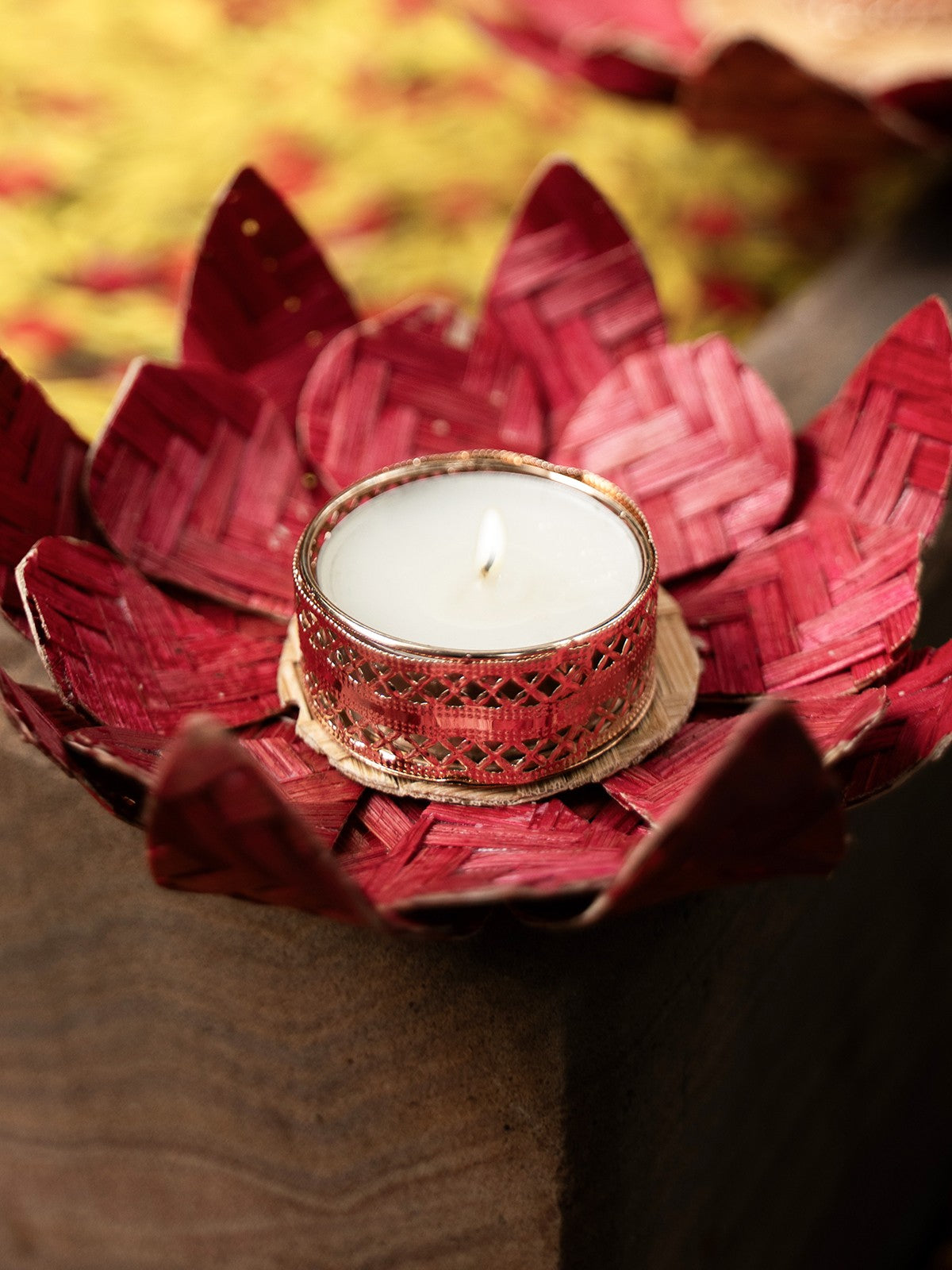 Handcrafted tea light holder made from bamboo, showcasing intricate weaves and a warm, earthy charm. Perfect for festive décor, cozy evenings, or eco-conscious gifting. Sustainable, elegant, and artisan-made