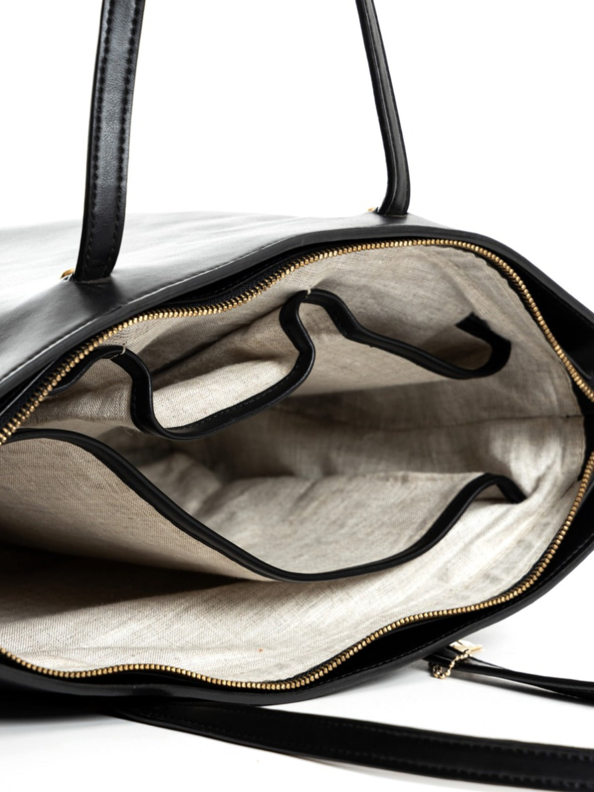Inspired by the Greek goddess of gardens, the Antheia Tote captures natural elegance with intricate golden embroidery on deep black vegan leather. Thoughtfully designed with multiple inner compartments and a secure zip closure, it combines functionality with timeless style, making it a graceful, sustainable choice for professionals and trendsetters alike.
