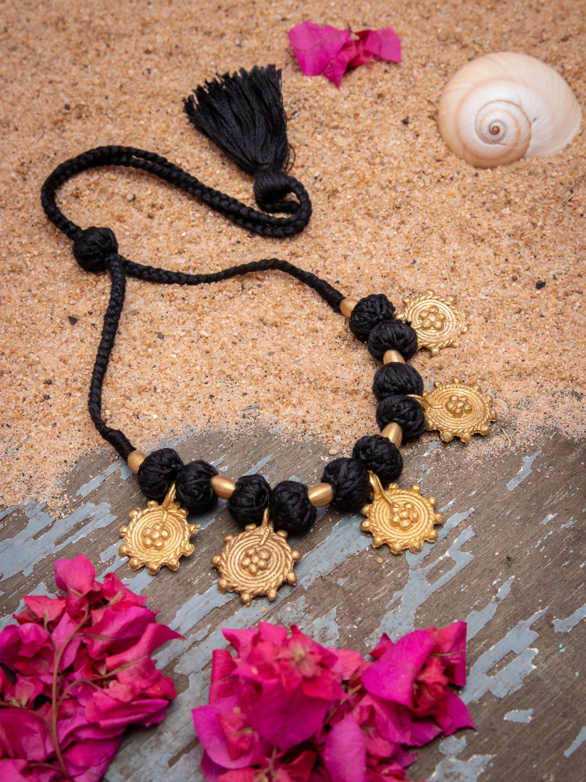 A timeless handcrafted necklace made with 100% brass Dhokra components, finished with love by rural artisans and women in West Bengal. Lightweight, elegant, and versatile—this necklace complements both ethnic and modern outfits. Perfect for gifting or styling your everyday look with heritage.