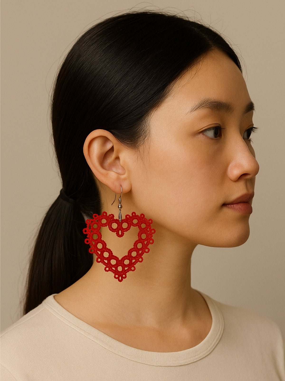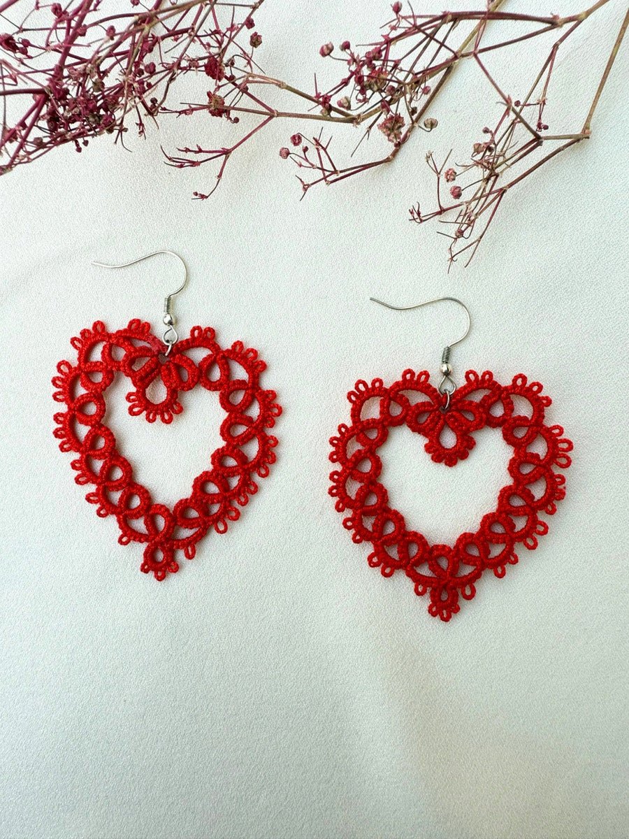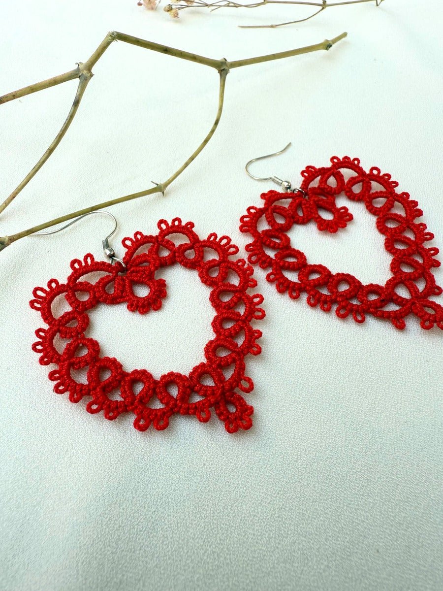 Beautifully crafted with cotton thread using the age-old technique of tatting, these earrings feature intricate lacework created stitch by stitch with shuttle tatting. Handmade with great care, each pair is exclusively crafted using this traditional method. These super cool, extremely lightweight earrings are versatile enough to complement any attire, ensuring you can wear them all day with ease. As artisanal items entirely made and decorated by hand, small imperfections denote the originality of the product. So, hop on board and add a touch of artisanal charm to your ensemble!