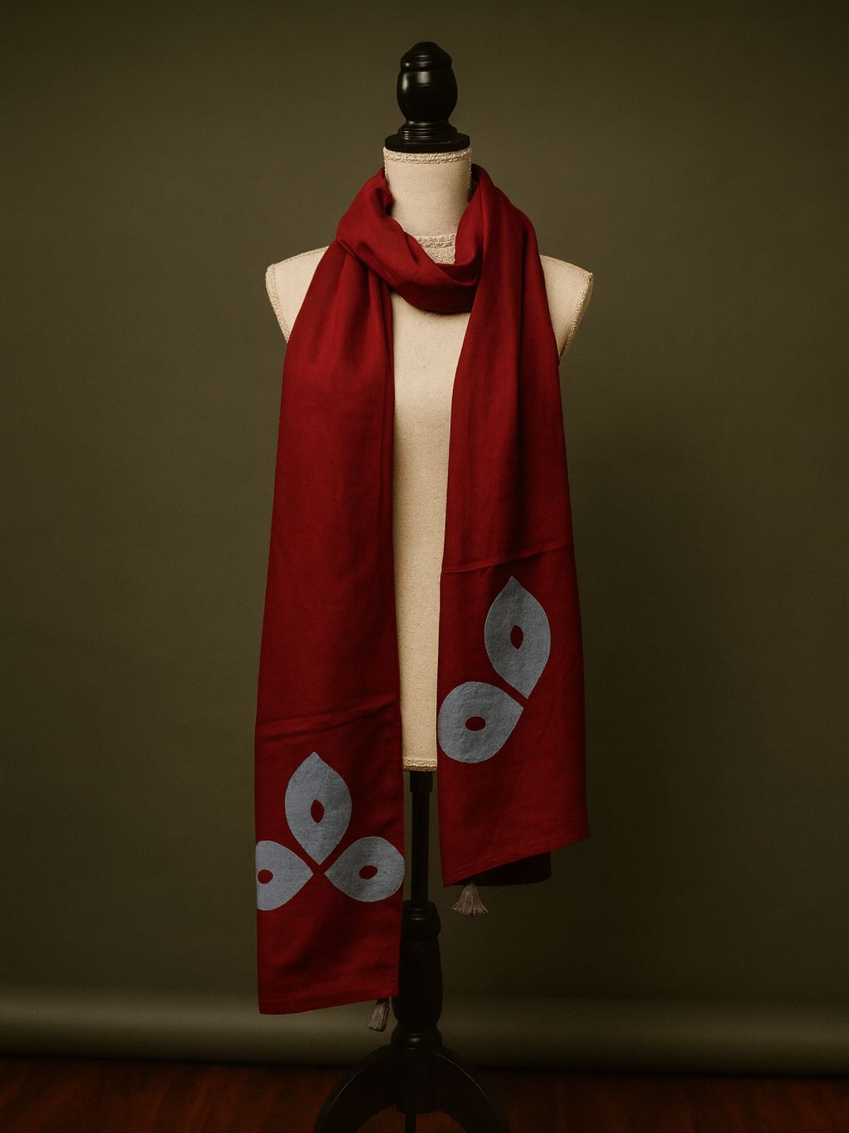Hand Applique Cotton Stole | Red