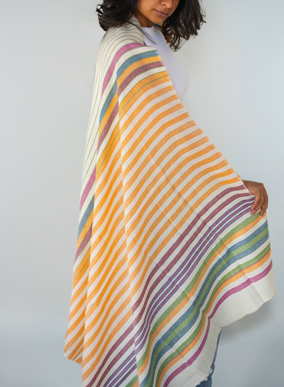 Embrace the cozy luxury of our pure merino wool shawl, handloom-woven for an exquisitely soft finish. Featuring delicate natural fringe detailing, it adds a subtle, refined touch—making it the perfect layer for chilly days and an effortlessly stylish companion for any outfit.