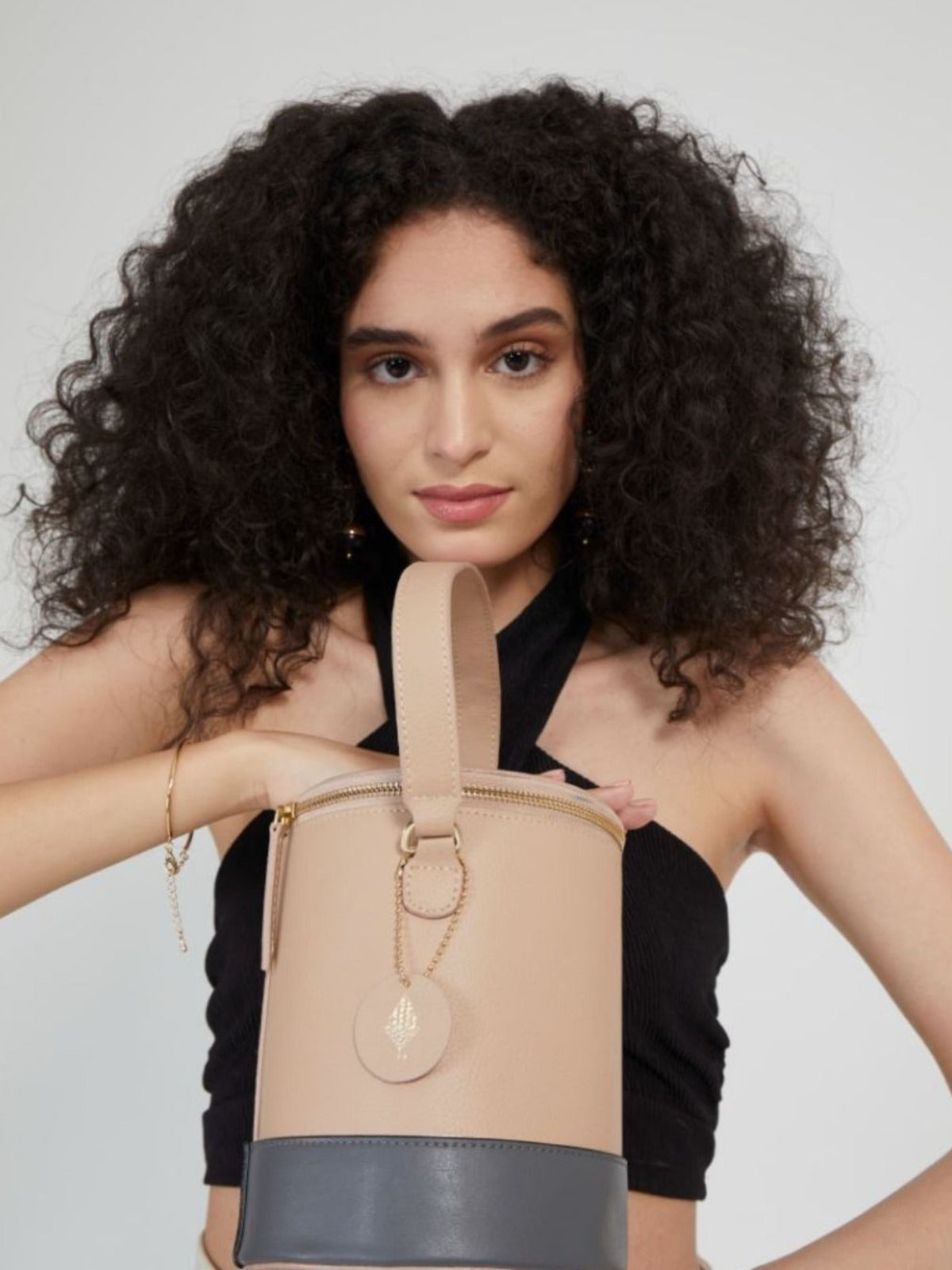 Hemera Vegan Leather Bucket Bag Almond & Grey