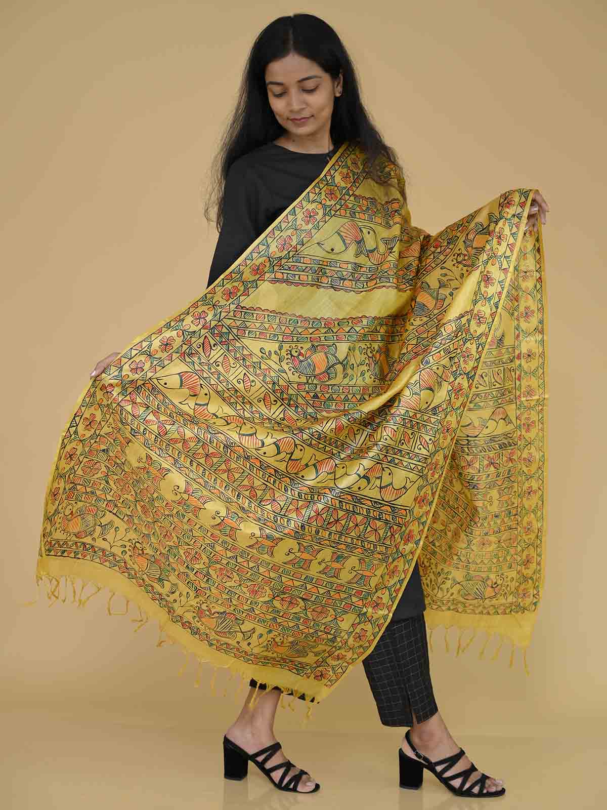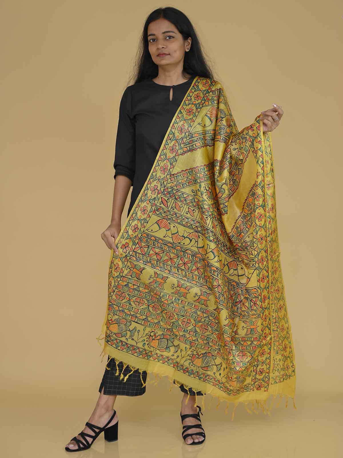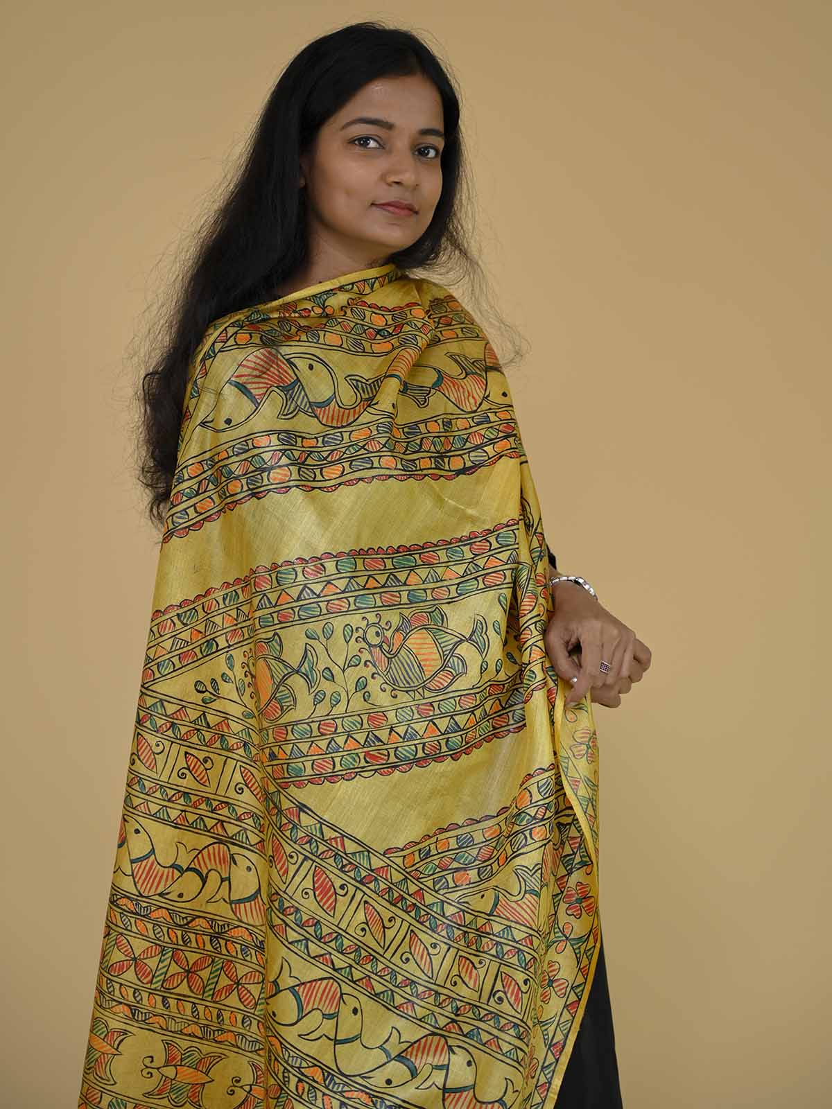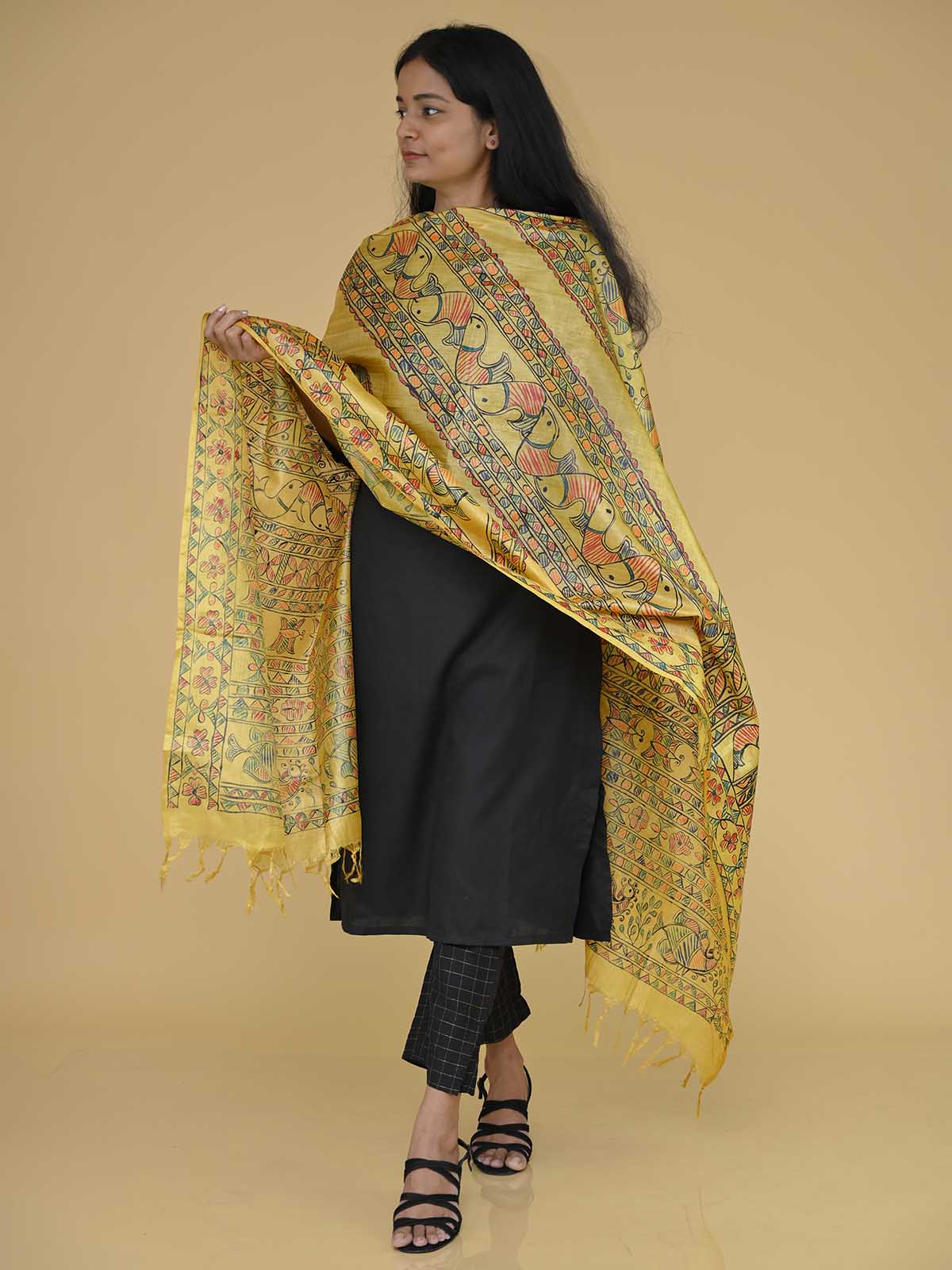 Madhubani Handpainted Tussar Silk Dupatta