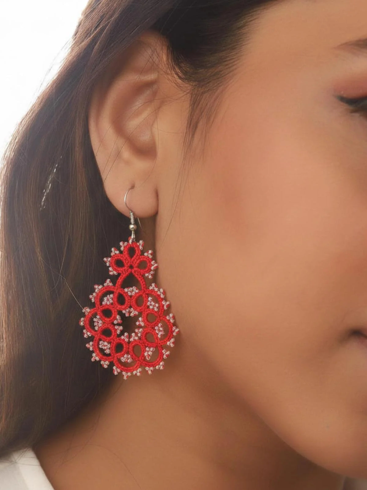 Beautifully crafted with cotton thread and delicate beads using the age-old technique of tatting, these earrings feature intricate lacework created knot by knot with shuttle tatting. Handmade with great care, each pair is exclusively crafted using this traditional method. These super cool, extremely lightweight earrings are versatile enough to complement any attire, ensuring you can wear them all day with ease. As artisanal items entirely made and decorated by hand, small imperfections denote the originality of the product. So, hop on board and add a touch of artisanal charm to your ensemble!