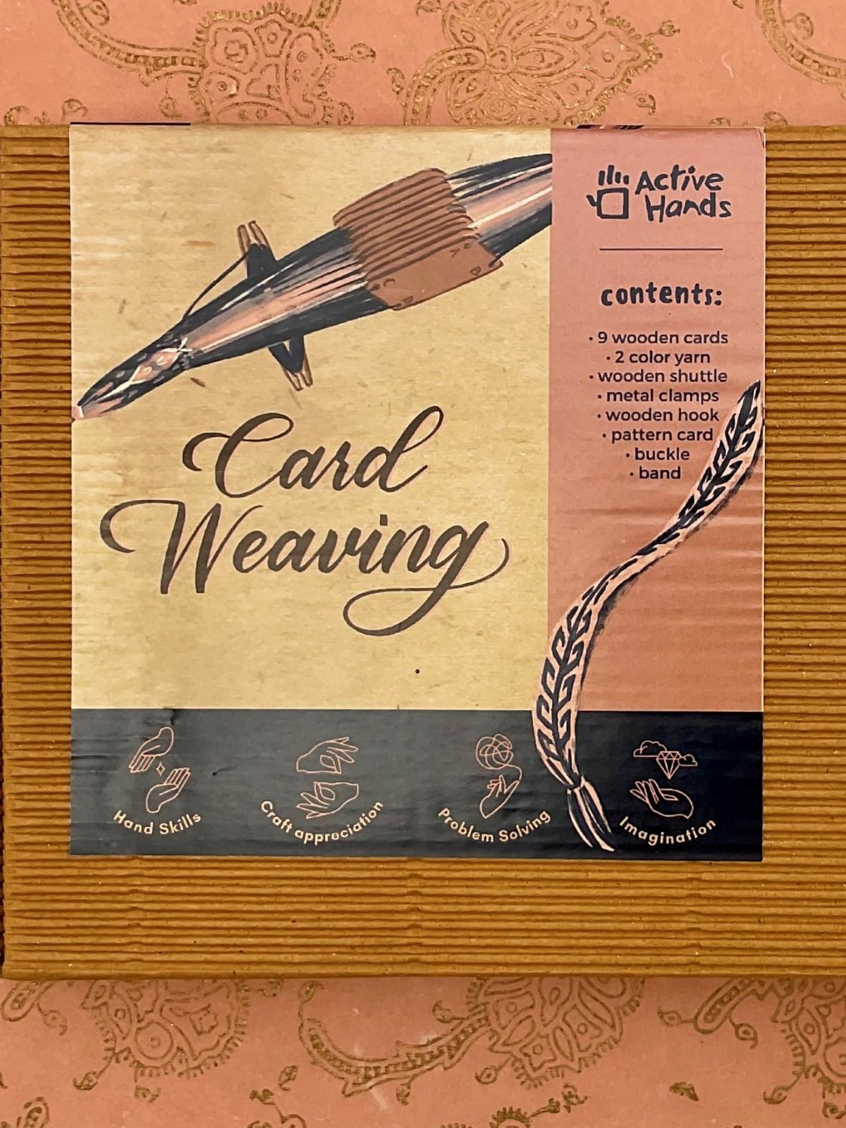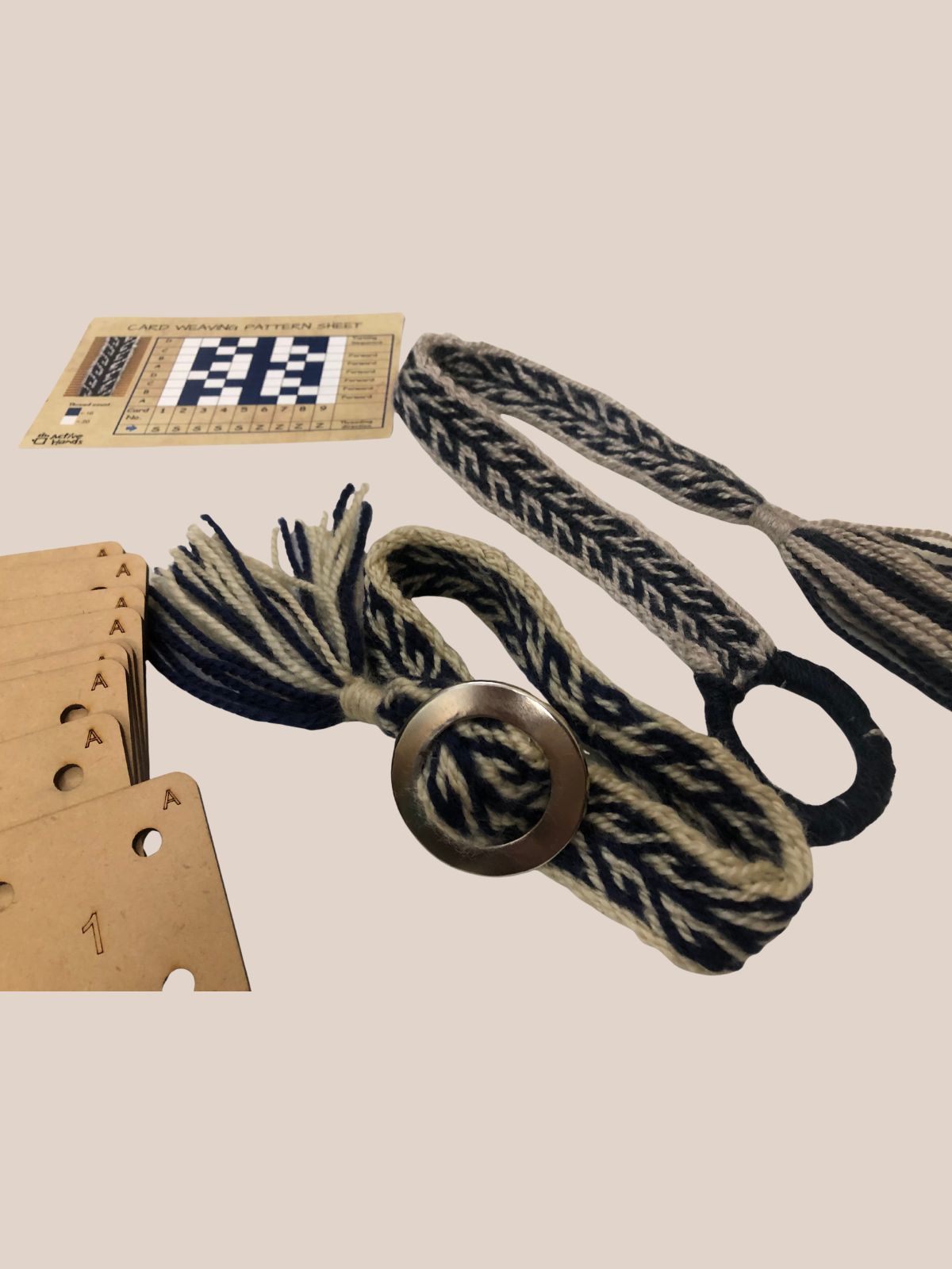 - In The Box: • 9 x Wooden cards • 2 x Color yarn • 1 x Wooden shuttle • 2 x Metal clamps • 1 x Wooden hook • Pattern card • 1 x Buckle