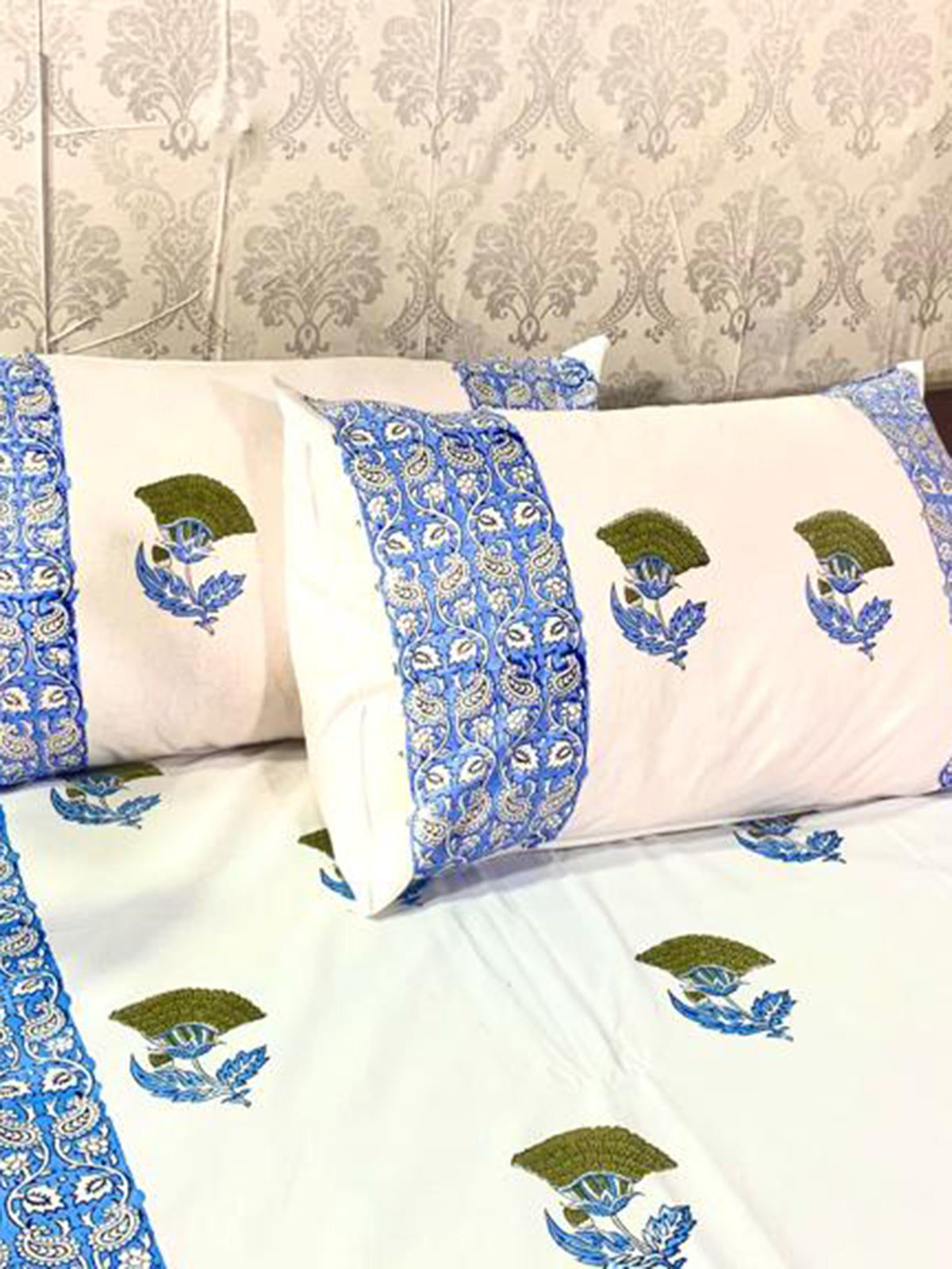 Experience the luxurious feel of a traditional hand block printed bedsheet that showcases the intricate craftsmanship of skilled artisans. Each bedsheet is meticulously crafted using natural dyes and traditional printing techniques, making it a unique piece of art that you can sleep on. Supreme Comfort Sleep soundly on this soft and comfortable king size bedsheet that is made from premium quality cotton. Its large size allows for ample coverage and ease of use, making it the perfect addition to your bedding collection. Easy Maintenance Enjoy the convenience of a bedsheet that is easy to care for and maintain. Simply toss it in the washing machine and it will come out looking as good as new. The colorfast fabric ensures that the colors will not fade over time, providing you with long-lasting beauty and functionality. Easy Care Traditional Bedding] Sleep in Style with a Traditional Hand Block Printed King Size Bedsheet | Artisanal Craftsmanship and Premium Quality Cotton Meta Description: Elevate your sleep experience with a traditional king size bedsheet that showcases the intricate artistry of skilled artisans. Made from premium quality cotton and colorfast fabric, this hand block printed bedding offers supreme comfort and easy maintenance, while adding a touch of elegance to your bedroom décor. Shop now to sleep in style!