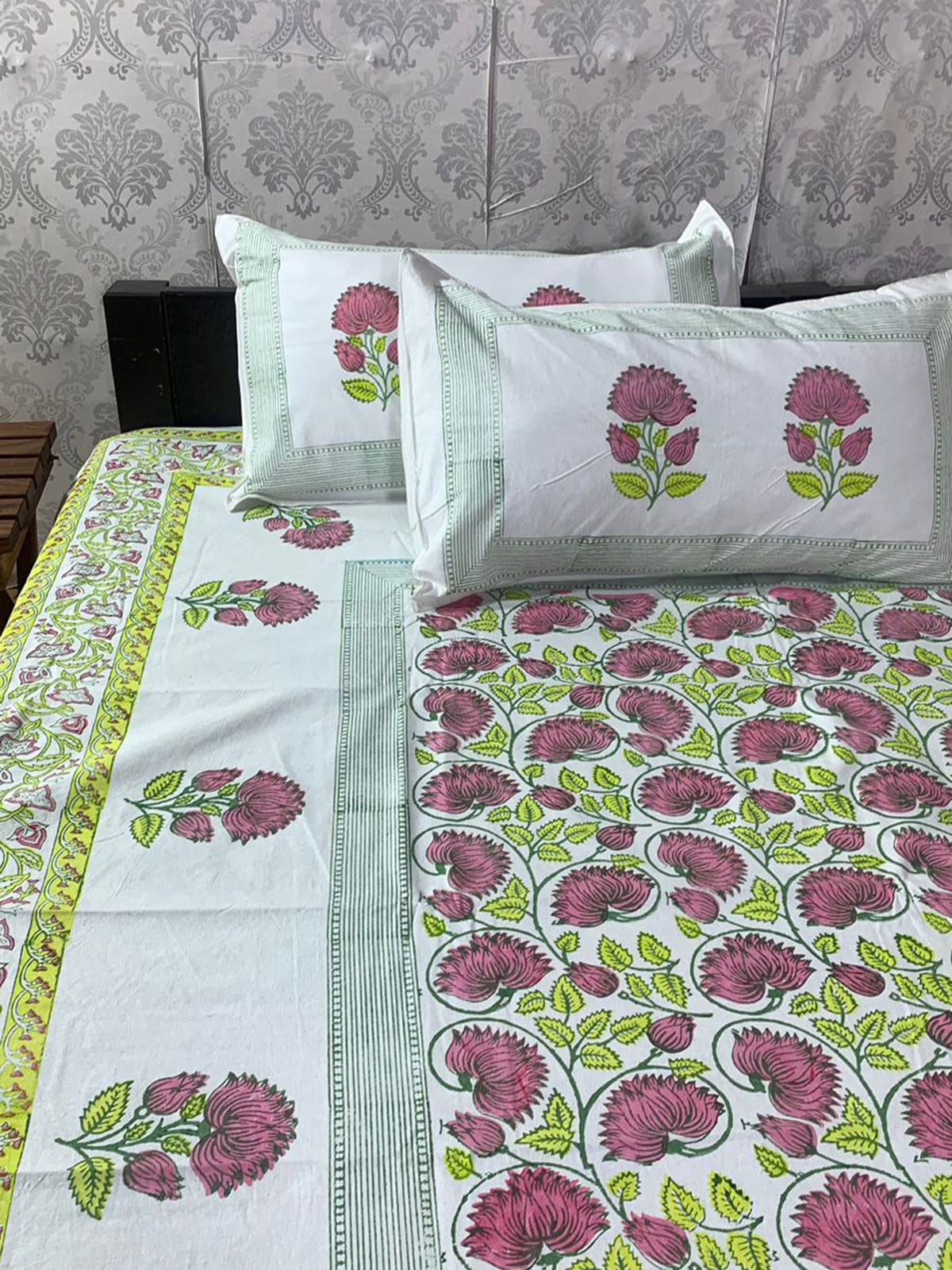 Experience the luxurious feel of a traditional hand block printed bedsheet that showcases the intricate craftsmanship of skilled artisans. Each bedsheet is meticulously crafted using natural dyes and traditional printing techniques, making it a unique piece of art that you can sleep on. Supreme Comfort Sleep soundly on this soft and comfortable king size bedsheet that is made from premium quality cotton. Its large size allows for ample coverage and ease of use, making it the perfect addition to your bedding collection. Easy Maintenance Enjoy the convenience of a bedsheet that is easy to care for and maintain. Simply toss it in the washing machine and it will come out looking as good as new. The colorfast fabric ensures that the colors will not fade over time, providing you with long-lasting beauty and functionality. Easy Care Traditional Bedding] Sleep in Style with a Traditional Hand Block Printed King Size Bedsheet | Artisanal Craftsmanship and Premium Quality Cotton Meta Description: Elevate your sleep experience with a traditional king size bedsheet that showcases the intricate artistry of skilled artisans. Made from premium quality cotton and colorfast fabric, this hand block printed bedding offers supreme comfort and easy maintenance, while adding a touch of elegance to your bedroom décor. Shop now to sleep in style!