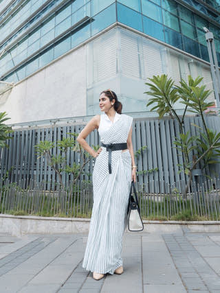 Aastey Jamdani Shirt Dress Black White - Cotton Women Cotton Dress in Black White color