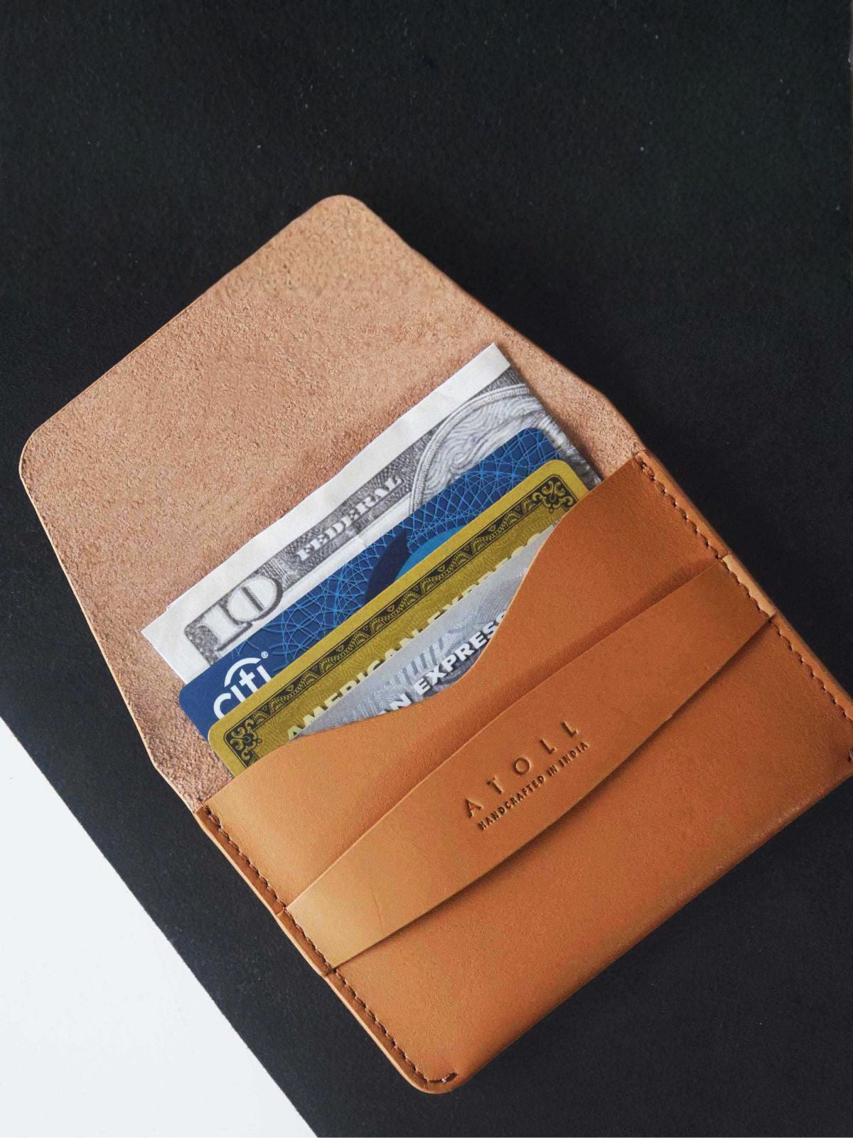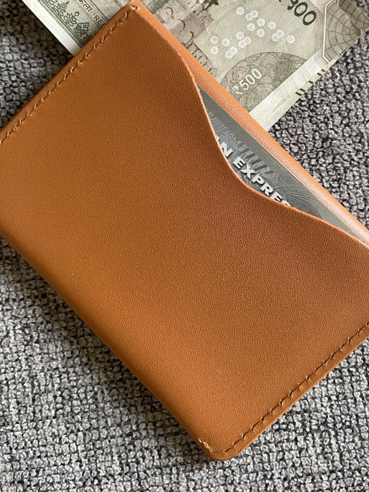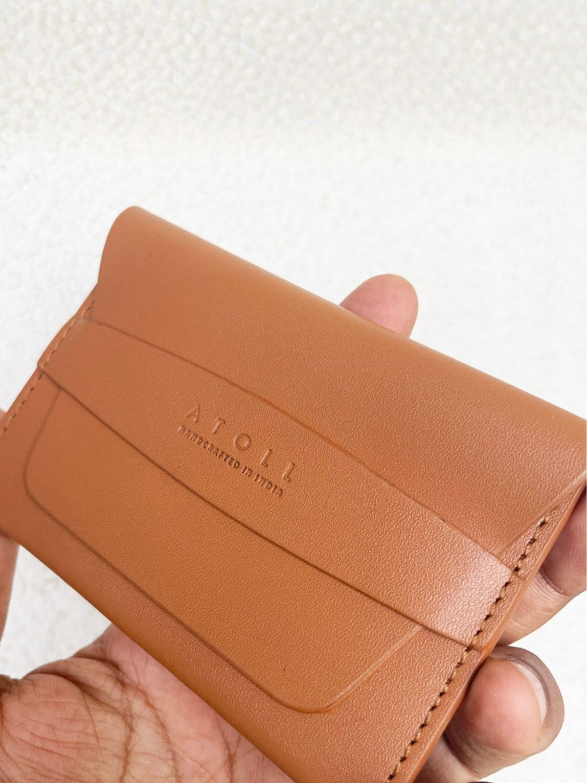 Slim Tan wallet in premium top-grain leather, designed for effortless portability. Features a main compartment for 4–6 cards and folded cash, plus a quick-access back pocket for ID or cash. Lightweight yet practical, it blends functionality with elegance, making it an essential accessory for organized, modern travelers on the move.