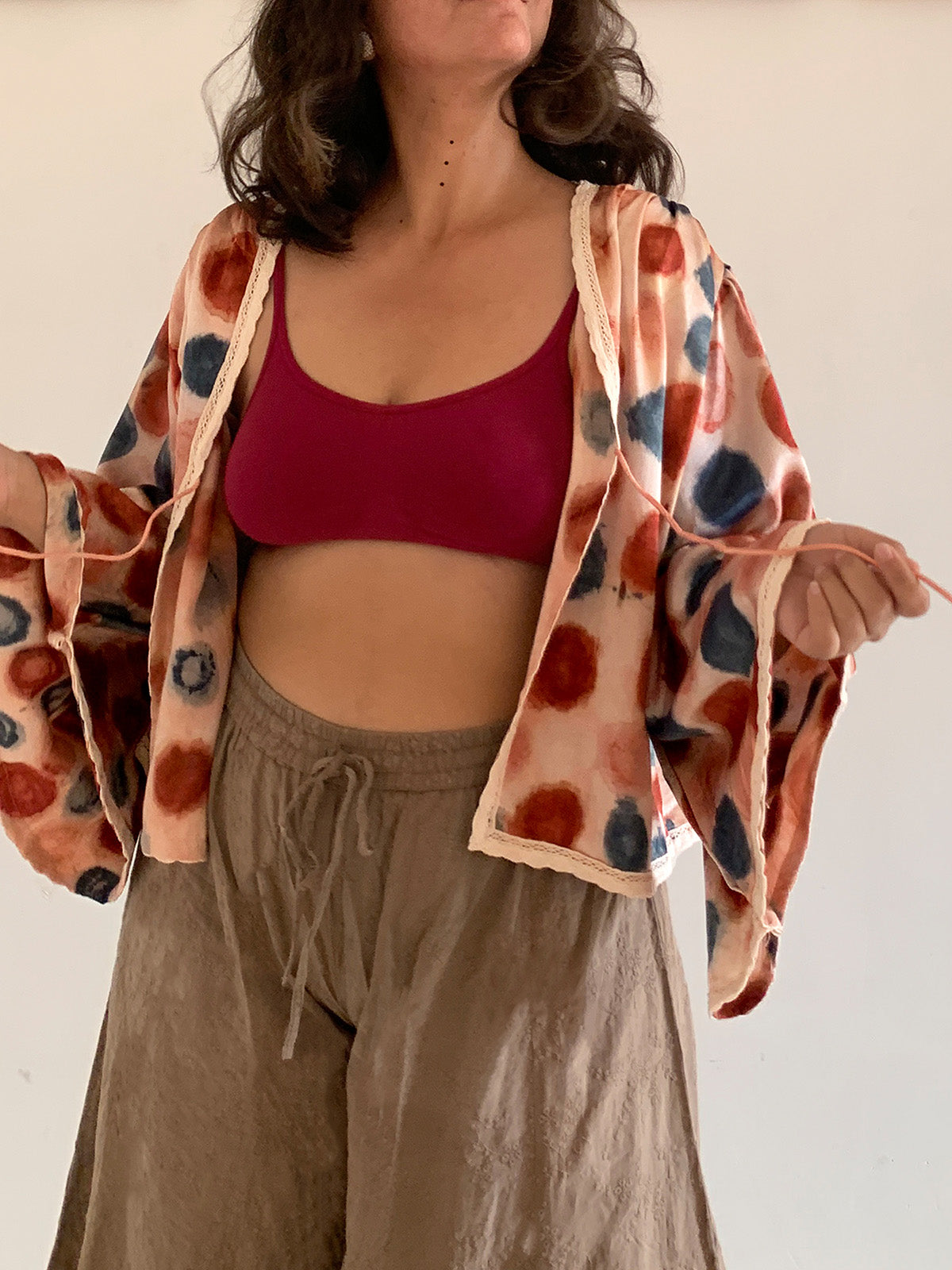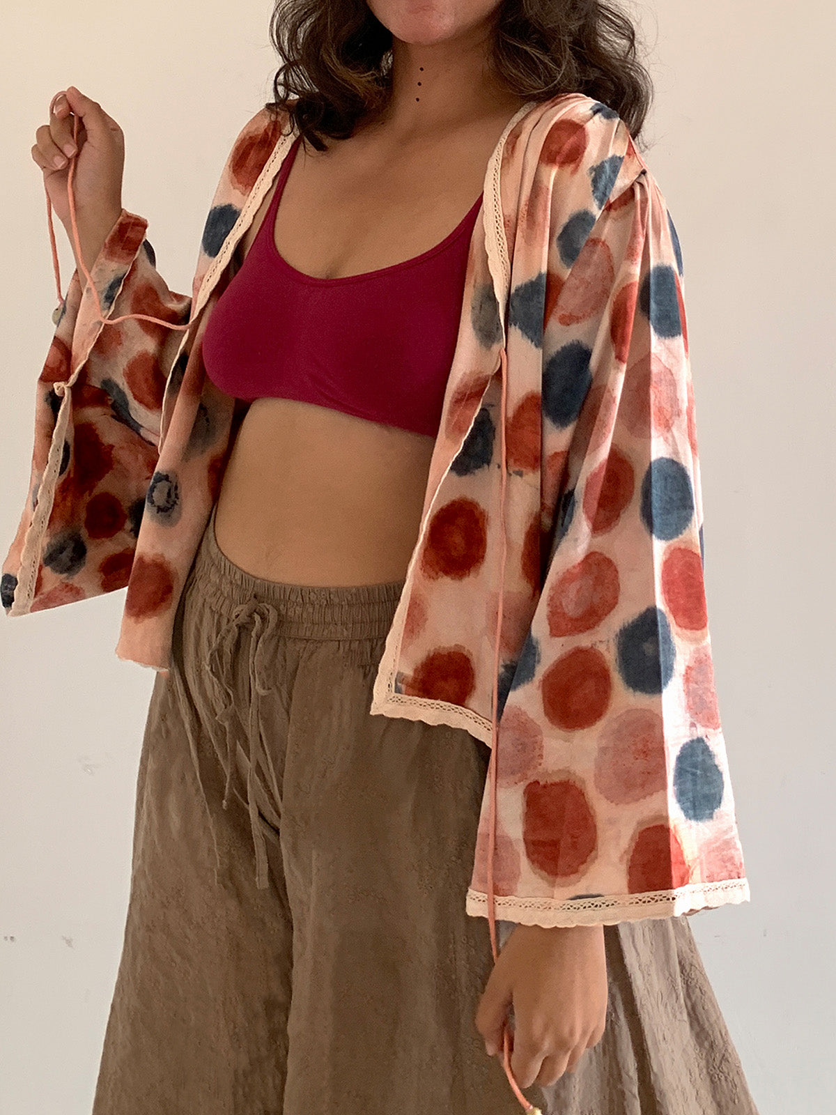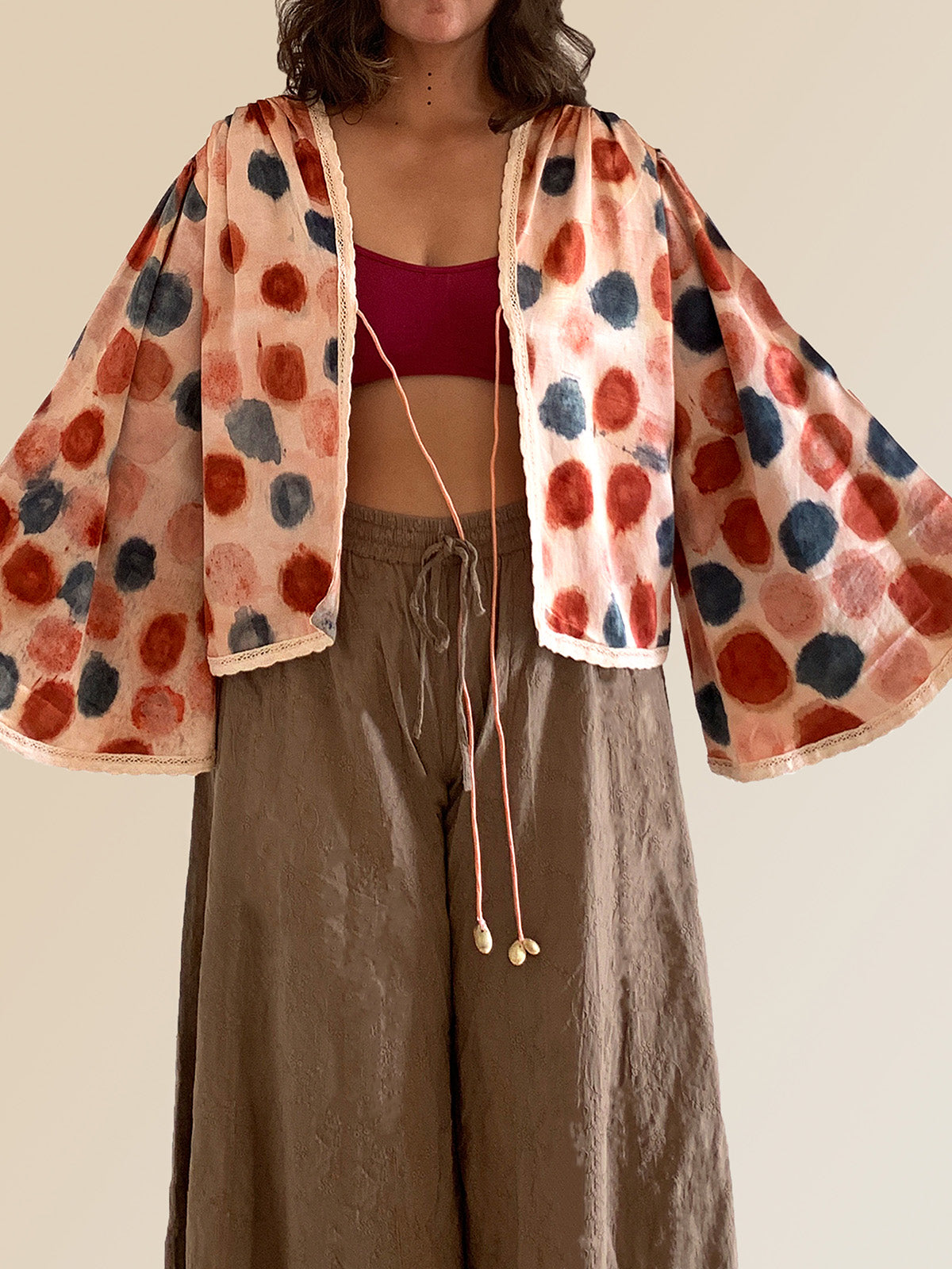 Introducing "Blush," elevating your style with the Handwoven Mashru Tie-Up featuring bell sleeves. Sourced from Patan, Gujarat, the Mashru fabric is dyed with Roses by skilled artisans, using sacred temple flowers to reduce marine pollution. The playful gathers on the shoulders and puffy bell sleeves make this short tie-up irresistibly cute. Immerse yourself in the exquisite craftsmanship of the Handwoven Handcrafted Mashru Tie-Up, a testament to traditional weaving techniques from Patan, Gujarat. Embrace the rich heritage and eco-conscious beauty of Mashru, where every thread tells a story of craftsmanship and sustainability.
