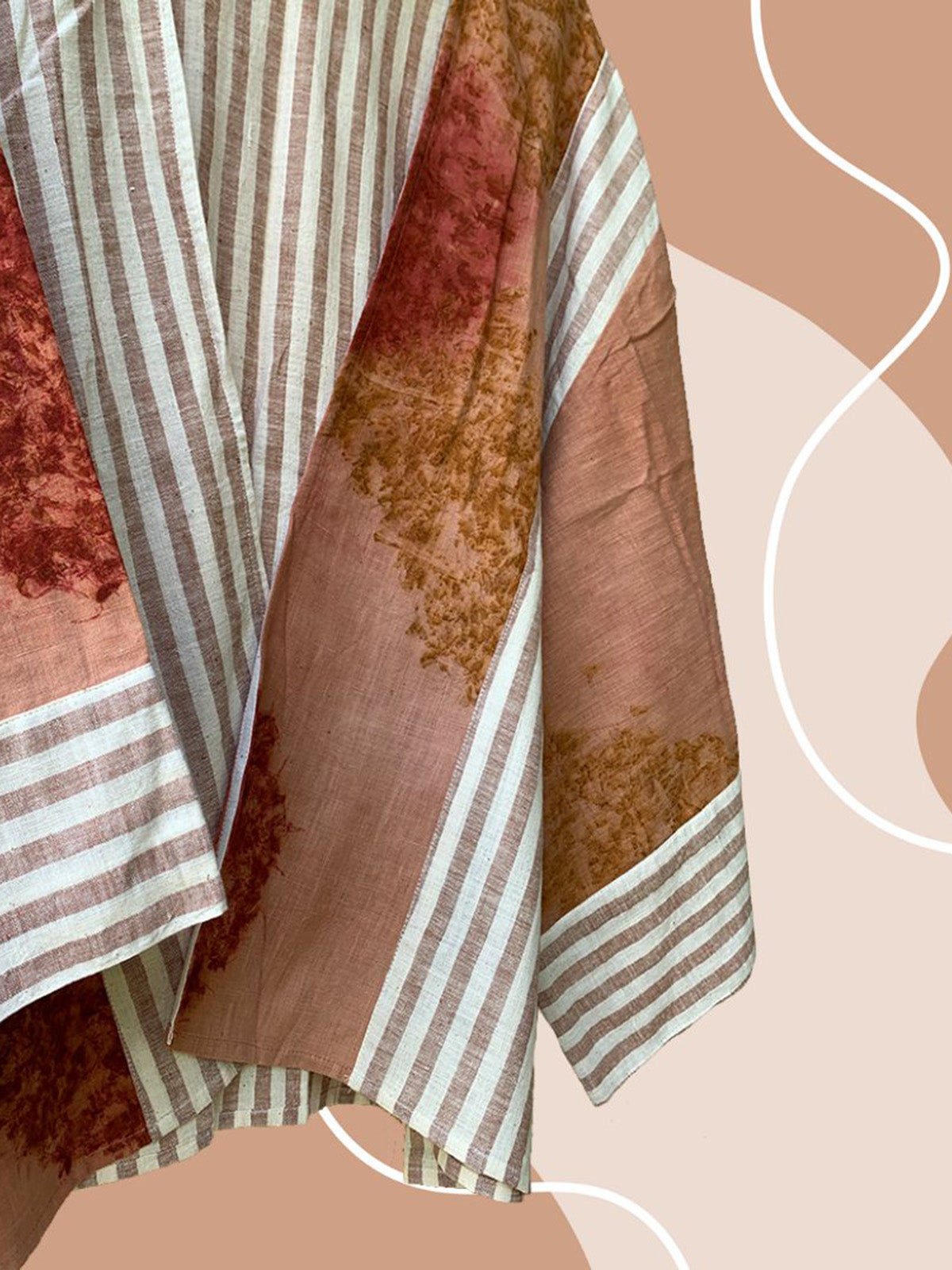 Experience the serenity of nature’s blooms with the handcrafted Ecoprinted Handwoven Breezy Jacket in yellow and pink. Adorned with vibrant hues, this jacket drapes elegantly, offering unmatched comfort and tranquility. Each piece is meticulously designed and skillfully crafted, making it a masterpiece that effortlessly complements any outfit. Versatile and stylish, it pairs beautifully with pants, skirts, or jumpsuits, adding a touch of merriment and vitality to your ensemble. Embrace the beauty of nature and enhance your wardrobe with this captivating Breezy Jacket, providing a stylish and calming presence wherever you go.