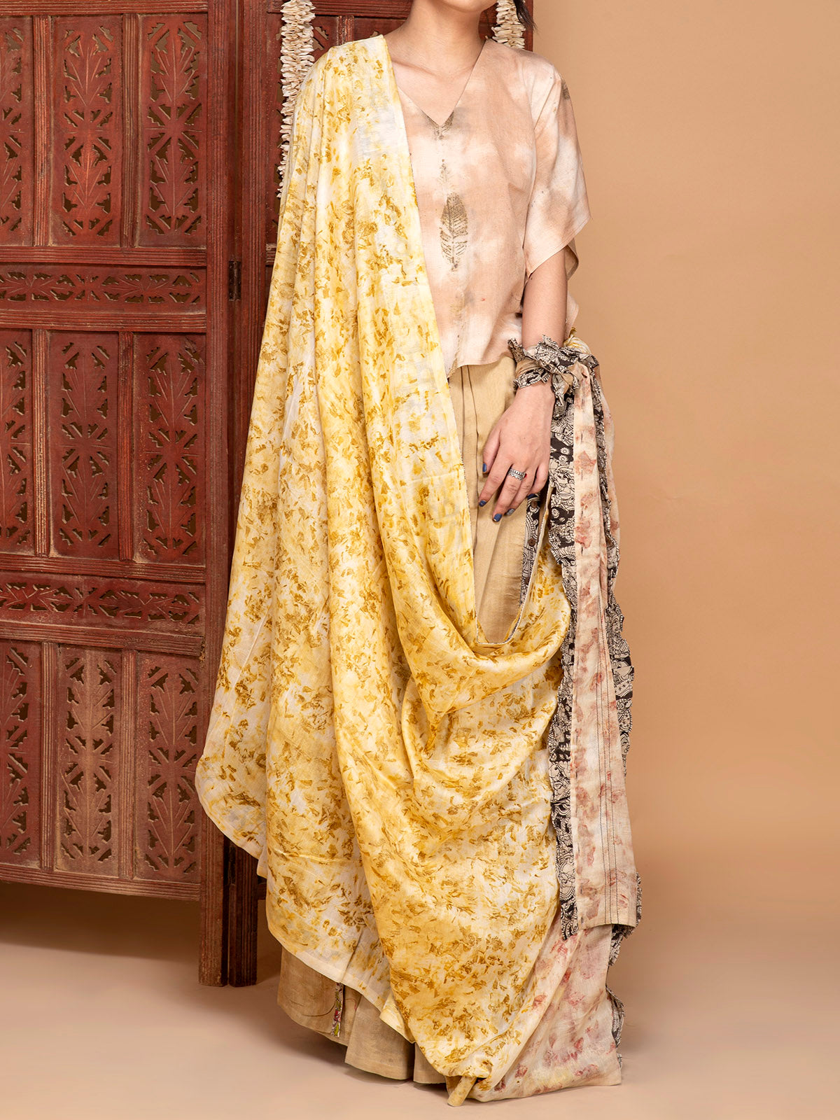 In our sacred sanctuary these unique crop tops find their identity, dyed with nurturing and healing herbs like marigolds and roses, adding a soothing effect. A perfect attire to pair with pants, skirts, or even under jumpsuits, bringing out your merry side in style. Experience the calming allure of nature with our captivating crop tops and embrace the essence of serenity wherever you go.