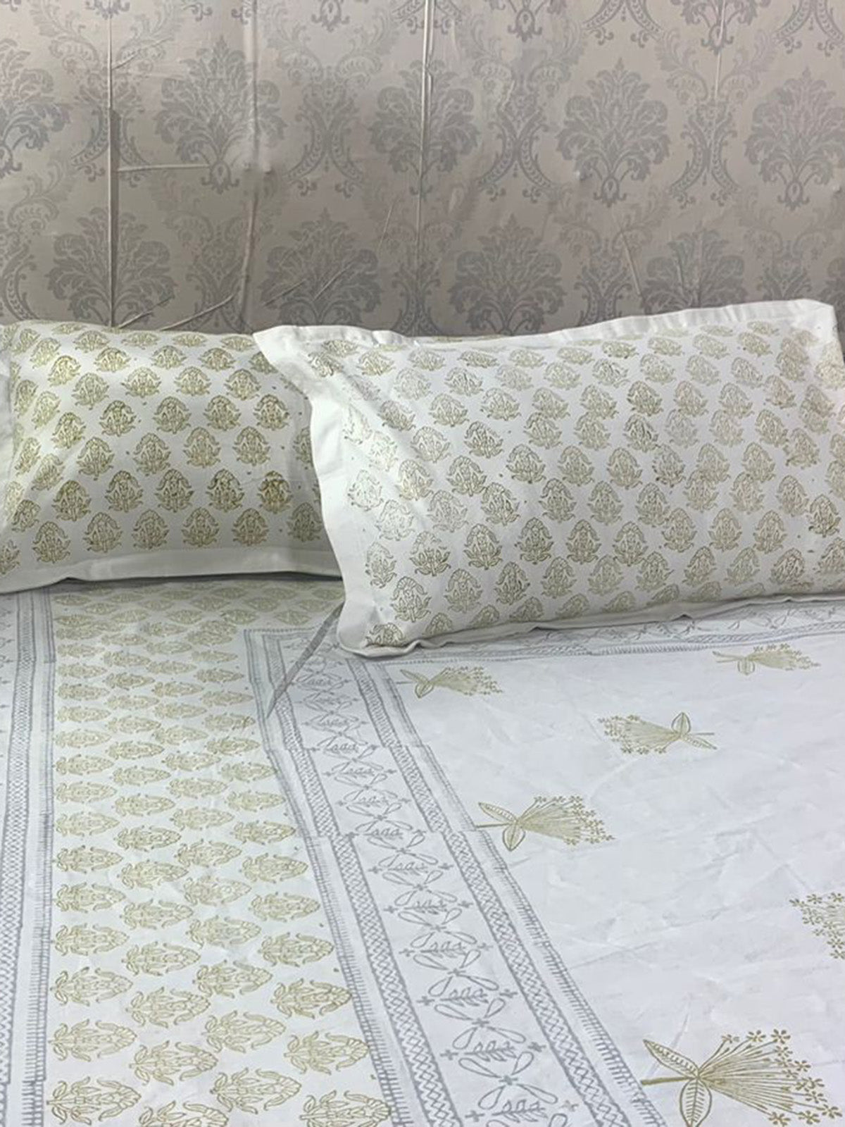 Experience the luxurious feel of a traditional hand block printed bedsheet that showcases the intricate craftsmanship of skilled artisans. Each bedsheet is meticulously crafted using natural dyes and traditional printing techniques, making it a unique piece of art that you can sleep on. Supreme Comfort Sleep soundly on this soft and comfortable king size bedsheet that is made from premium quality cotton. Its large size allows for ample coverage and ease of use, making it the perfect addition to your bedding collection. Easy Maintenance Enjoy the convenience of a bedsheet that is easy to care for and maintain. Simply toss it in the washing machine and it will come out looking as good as new. The colorfast fabric ensures that the colors will not fade over time, providing you with long-lasting beauty and functionality. Easy Care Traditional Bedding] Sleep in Style with a Traditional Hand Block Printed King Size Bedsheet | Artisanal Craftsmanship and Premium Quality Cotton Meta Description: Elevate your sleep experience with a traditional king size bedsheet that showcases the intricate artistry of skilled artisans. Made from premium quality cotton and colorfast fabric, this hand block printed bedding offers supreme comfort and easy maintenance, while adding a touch of elegance to your bedroom décor. Shop now to sleep in style!