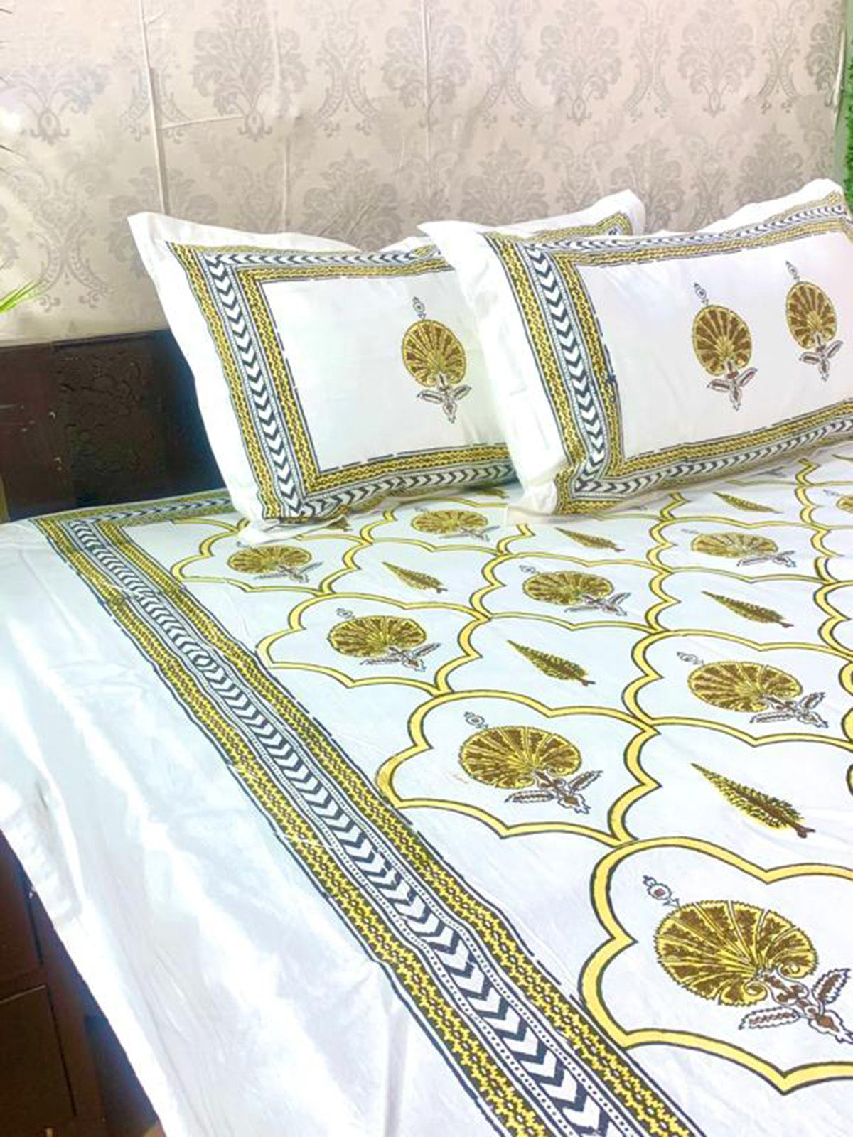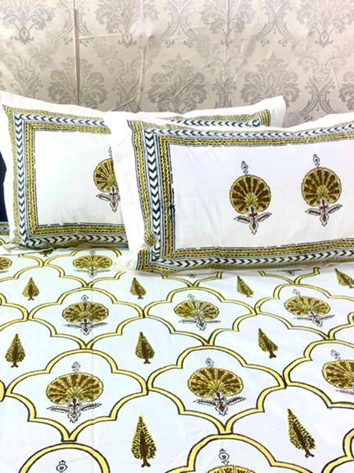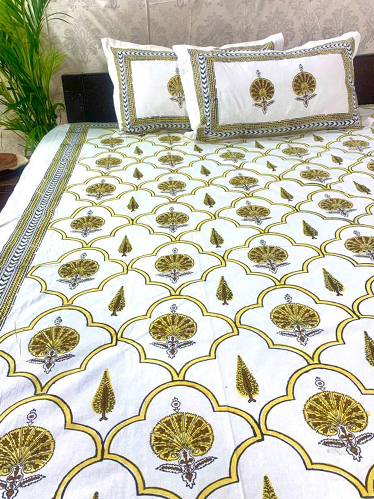 Mughal Zaali Hand Block Printed Double Bedsheet