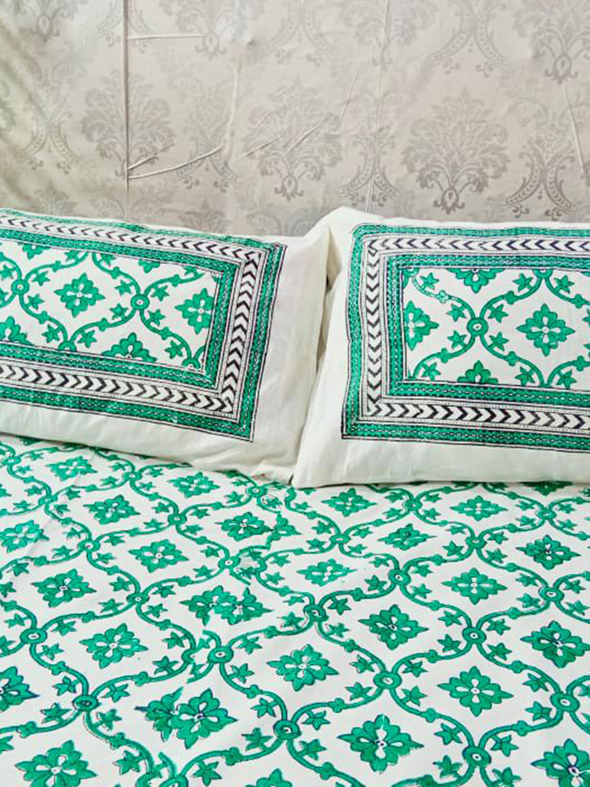 Experience the luxurious feel of a traditional hand block printed bedsheet that showcases the intricate craftsmanship of skilled artisans. Each bedsheet is meticulously crafted using natural dyes and traditional printing techniques, making it a unique piece of art that you can sleep on. Supreme Comfort Sleep soundly on this soft and comfortable king size bedsheet that is made from premium quality cotton. Its large size allows for ample coverage and ease of use, making it the perfect addition to your bedding collection. Easy Maintenance Enjoy the convenience of a bedsheet that is easy to care for and maintain. Simply toss it in the washing machine and it will come out looking as good as new. The colorfast fabric ensures that the colors will not fade over time, providing you with long-lasting beauty and functionality. Easy Care Traditional Bedding] Sleep in Style with a Traditional Hand Block Printed King Size Bedsheet | Artisanal Craftsmanship and Premium Quality Cotton Meta Description: Elevate your sleep experience with a traditional king size bedsheet that showcases the intricate artistry of skilled artisans. Made from premium quality cotton and colorfast fabric, this hand block printed bedding offers supreme comfort and easy maintenance, while adding a touch of elegance to your bedroom décor. Shop now to sleep in style!