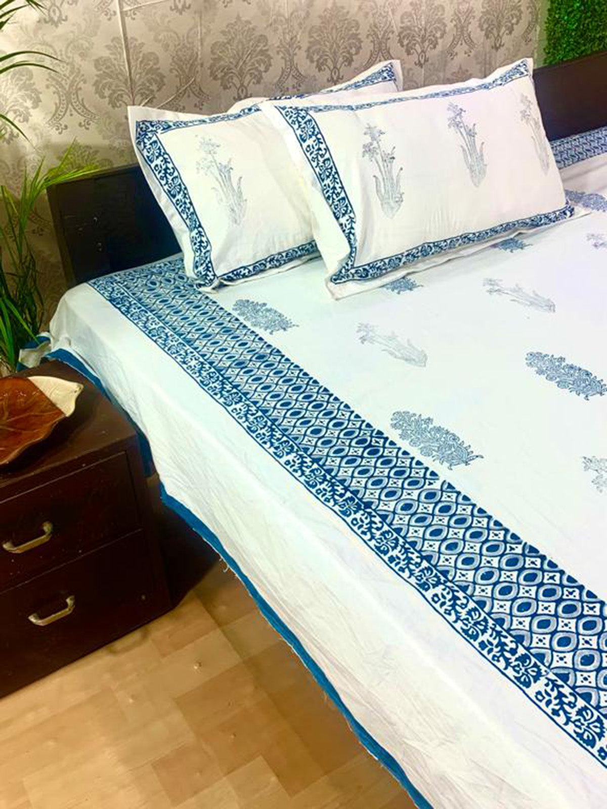 Experience the luxurious feel of a traditional hand block printed bedsheet that showcases the intricate craftsmanship of skilled artisans. Each bedsheet is meticulously crafted using natural dyes and traditional printing techniques, making it a unique piece of art that you can sleep on. Supreme Comfort Sleep soundly on this soft and comfortable king size bedsheet that is made from premium quality cotton. Its large size allows for ample coverage and ease of use, making it the perfect addition to your bedding collection. Easy Maintenance Enjoy the convenience of a bedsheet that is easy to care for and maintain. Simply toss it in the washing machine and it will come out looking as good as new. The colorfast fabric ensures that the colors will not fade over time, providing you with long-lasting beauty and functionality. Easy Care Traditional Bedding] Sleep in Style with a Traditional Hand Block Printed King Size Bedsheet | Artisanal Craftsmanship and Premium Quality Cotton Meta Description: Elevate your sleep experience with a traditional king size bedsheet that showcases the intricate artistry of skilled artisans. Made from premium quality cotton and colorfast fabric, this hand block printed bedding offers supreme comfort and easy maintenance, while adding a touch of elegance to your bedroom décor. Shop now to sleep in style!