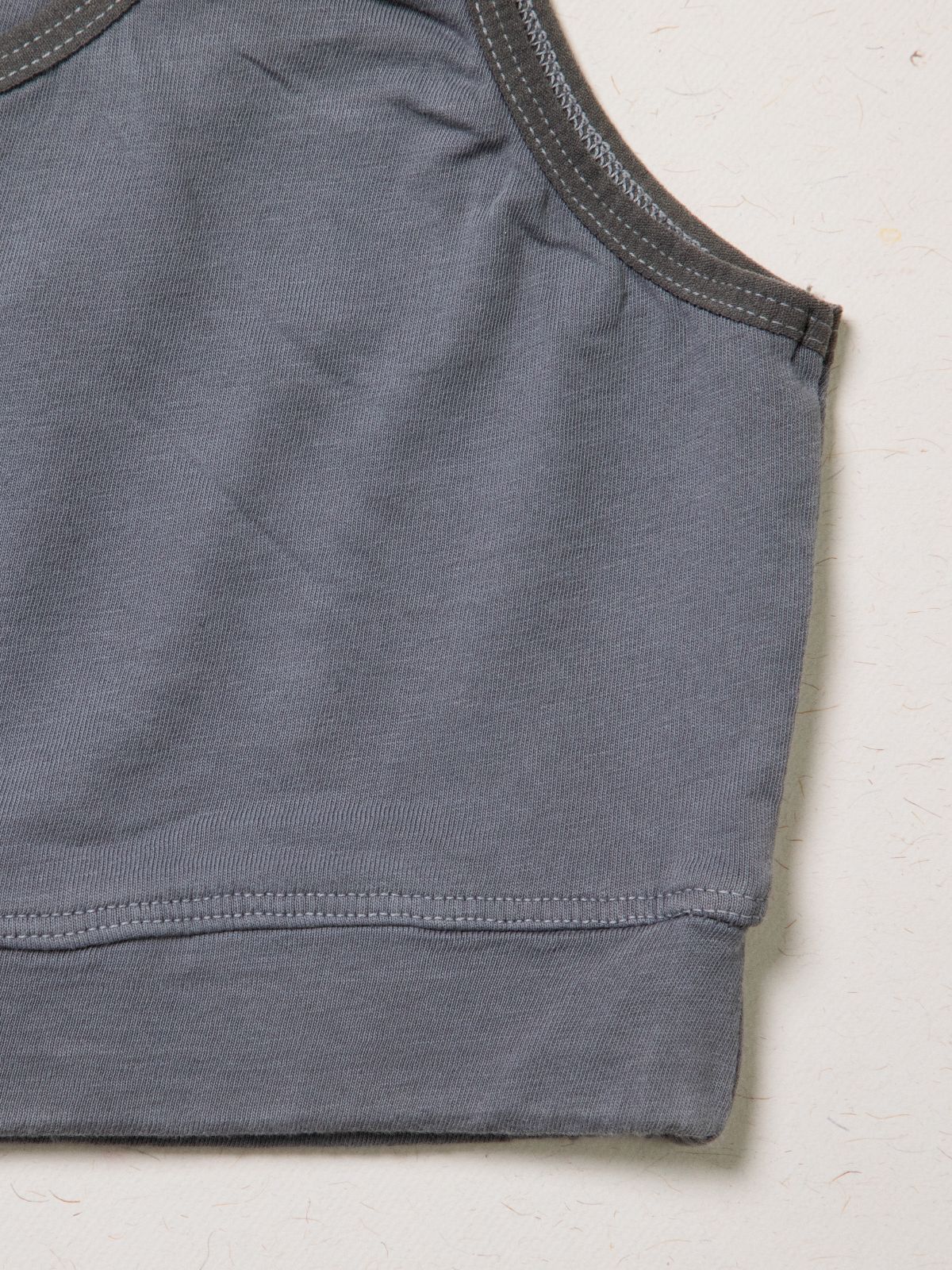 Crafted from plant-dyed, super-combed organic cotton with elastane, this misty grey bra offers full coverage and all-day comfort. Featuring wide straps and a concealed waistband, it naturally resists bacteria, making it perfect for daily wear, sleep, or casual activities. Gentle, breathable, and chemical-free—comfort redefined.
