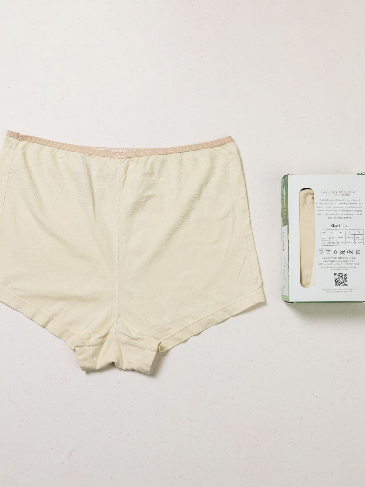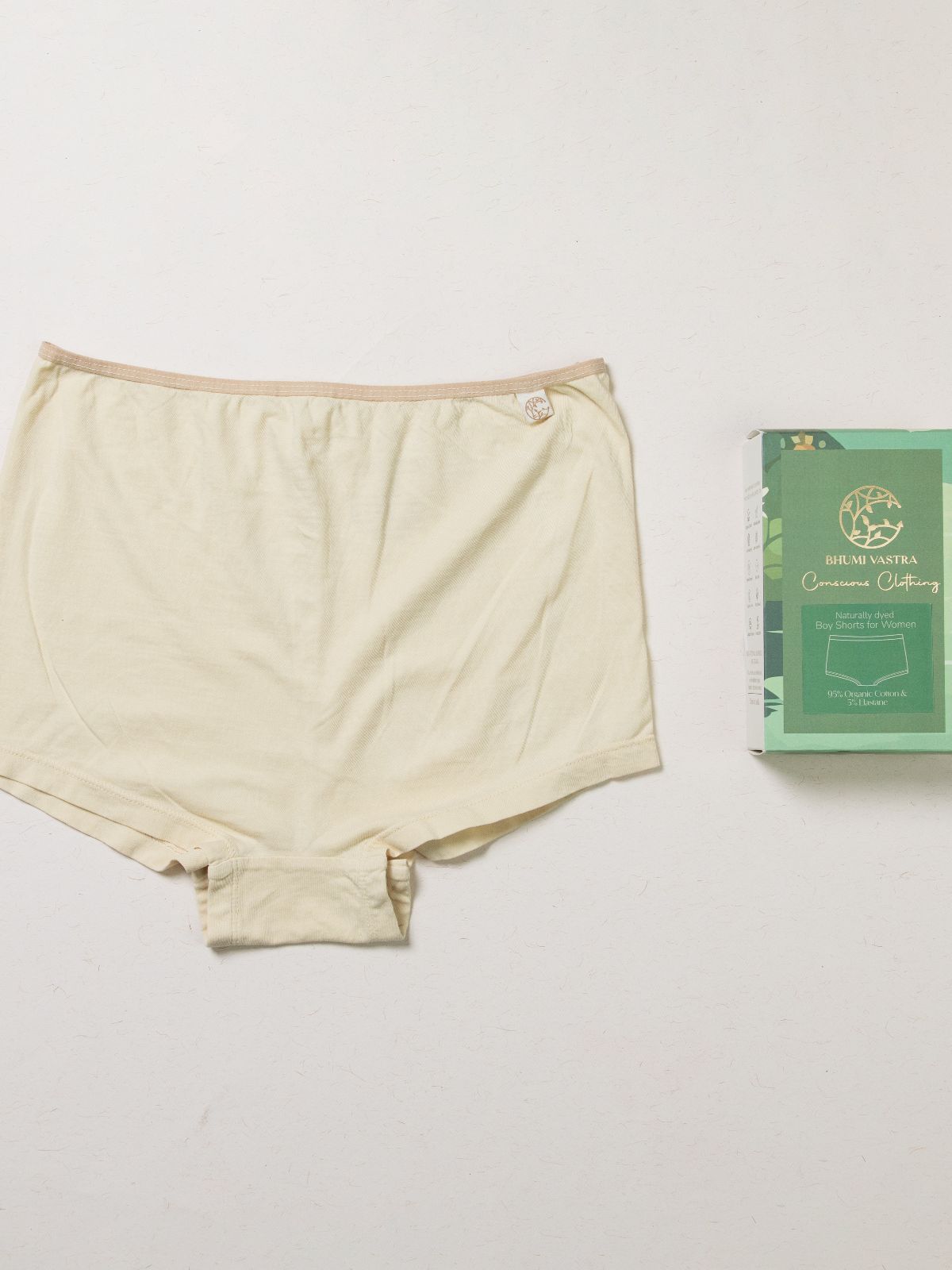 Brighten your wardrobe with these plant-dyed Yellow boy shorts. Made from super-combed organic cotton with elastane stretch, they provide high coverage and a soft, comfortable waistband. Naturally anti-microbial and chemical-free, these breathable shorts are perfect for daily wear, sleep, or lounging, combining eco-consciousness with all-day comfort.
