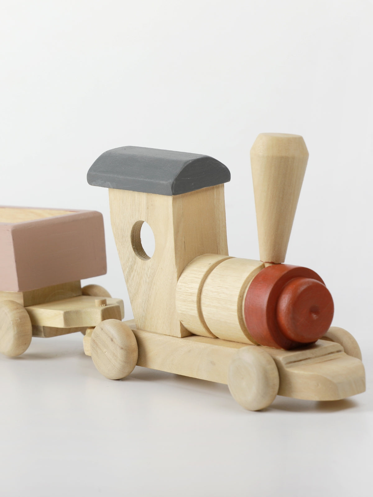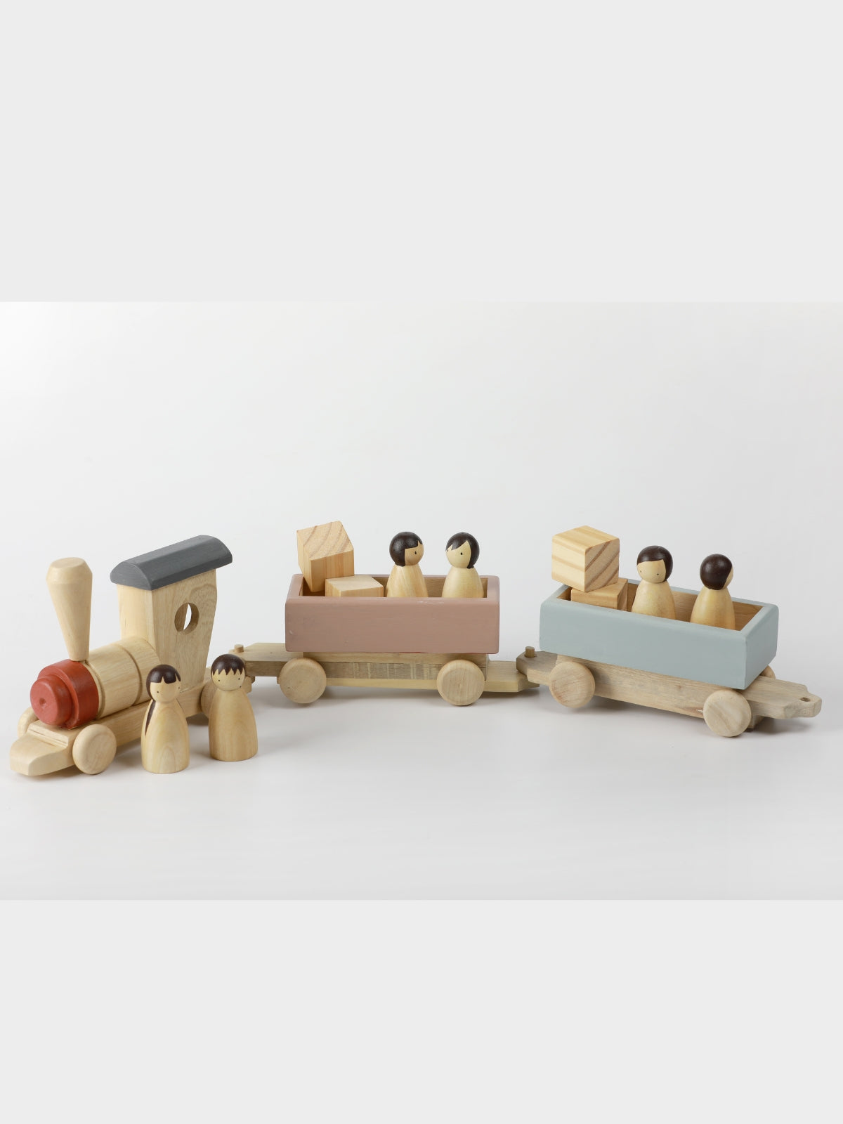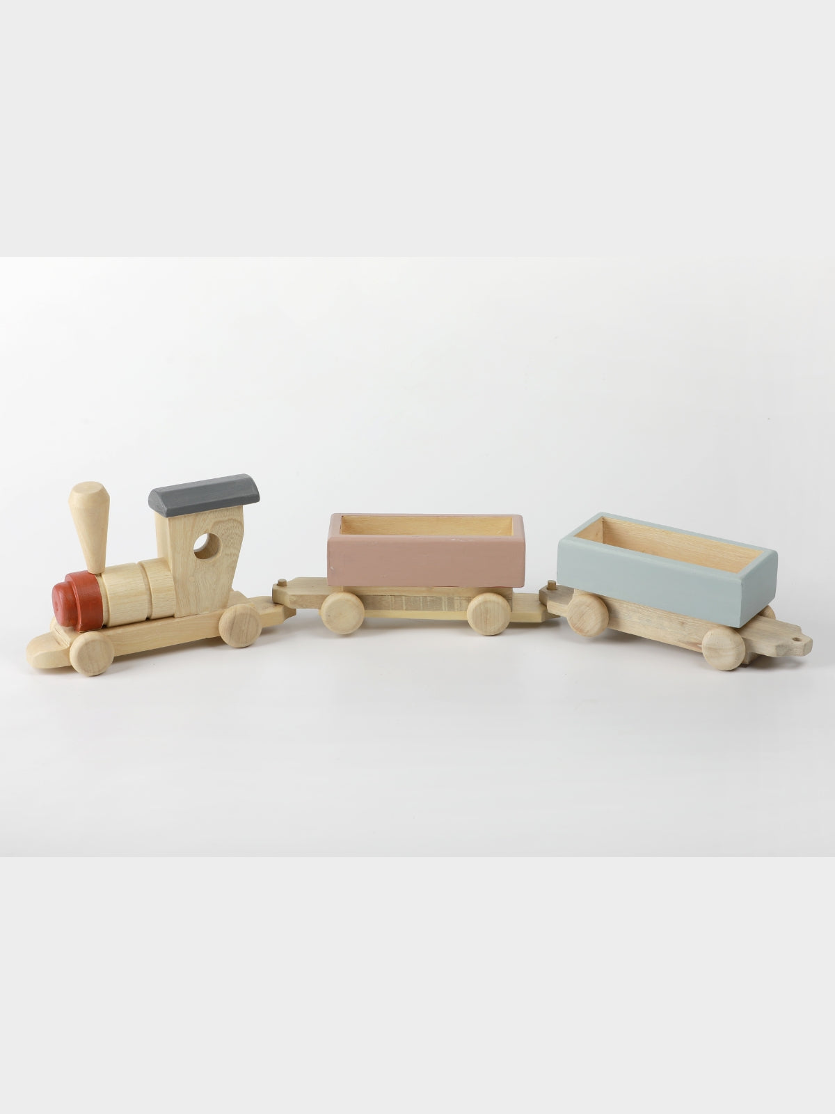 - In The Box: 1 Wooden Engine with 2 Carriages