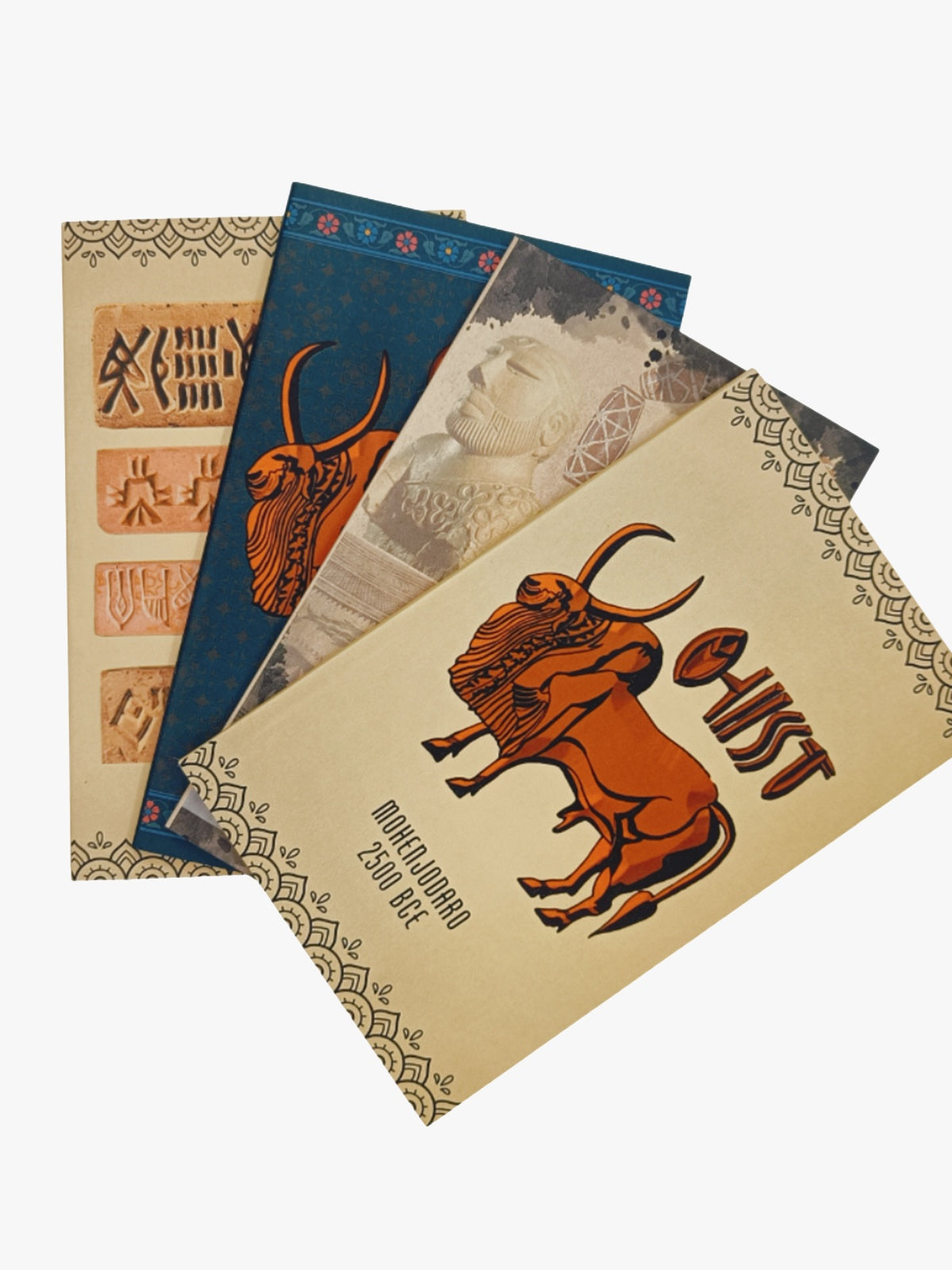 Aravali bring to you a set of four (4) history themed notebooks in A5 size. The notebooks have 100 off-white, 80 gsm pages each. The notebooks have been designed to show the rich history of the Sindhu Sarasvati Civilissation through various motifs. These notebooks are perfect for writing notes, journal entries, college and school work and make an excellent gift for history enthusiasts.