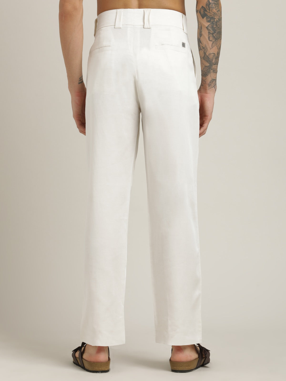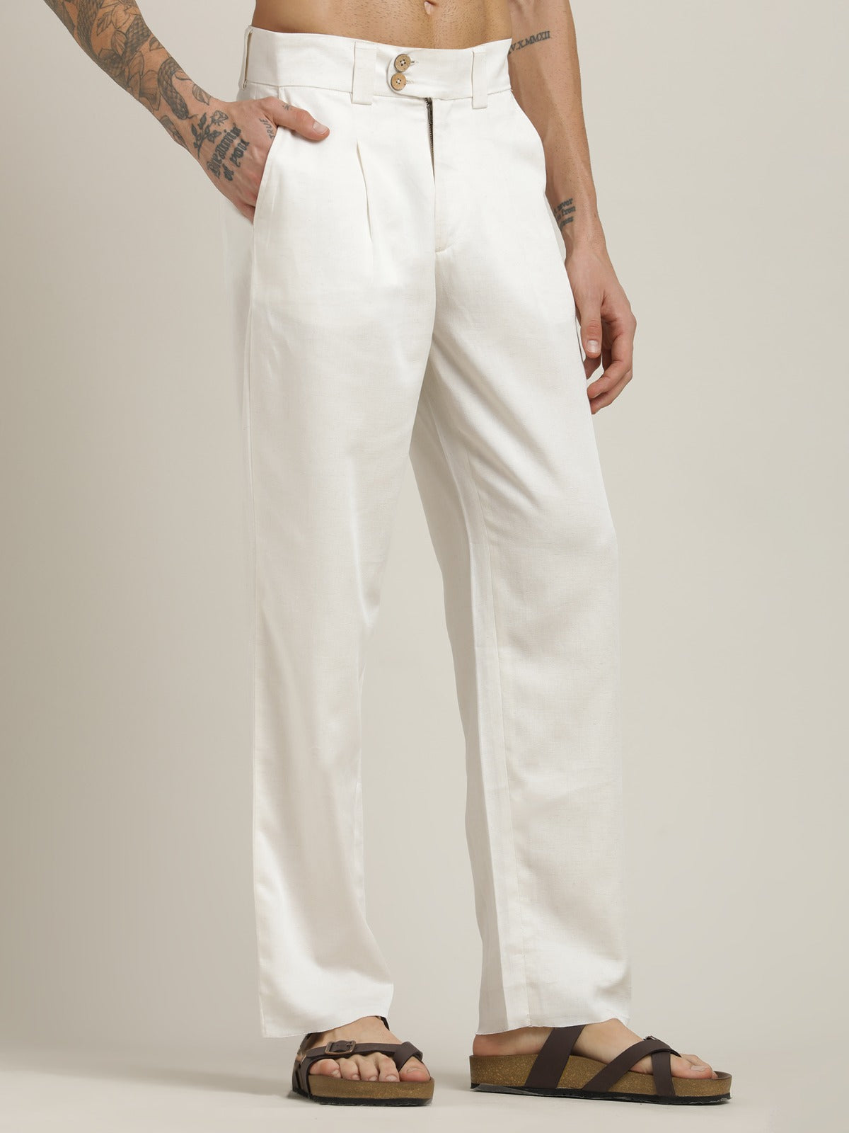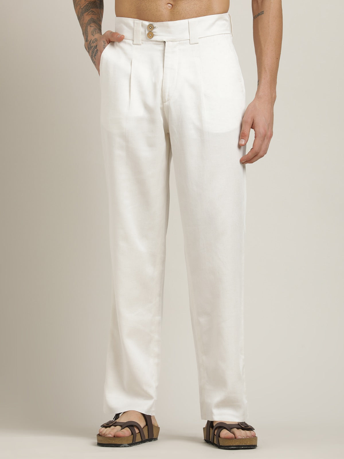 Cream Relaxed Straight Leg Pleated Formal Trousers