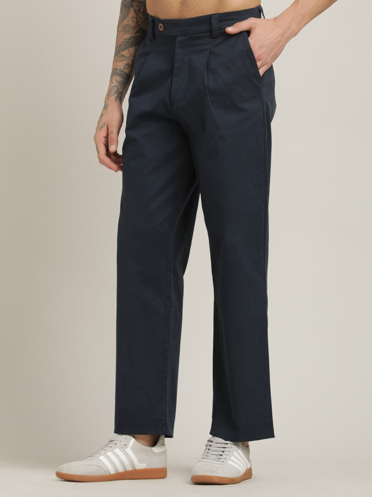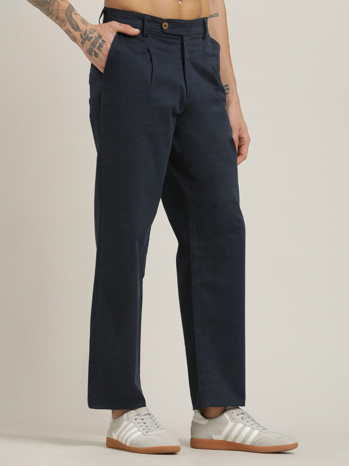 Classic tailoring meets effortless style in these single pleated relaxed fit chinos. Designed for the modern man, these trousers combine subtle volume with structure through the clean pleat detailing- maintaining everyday ease.