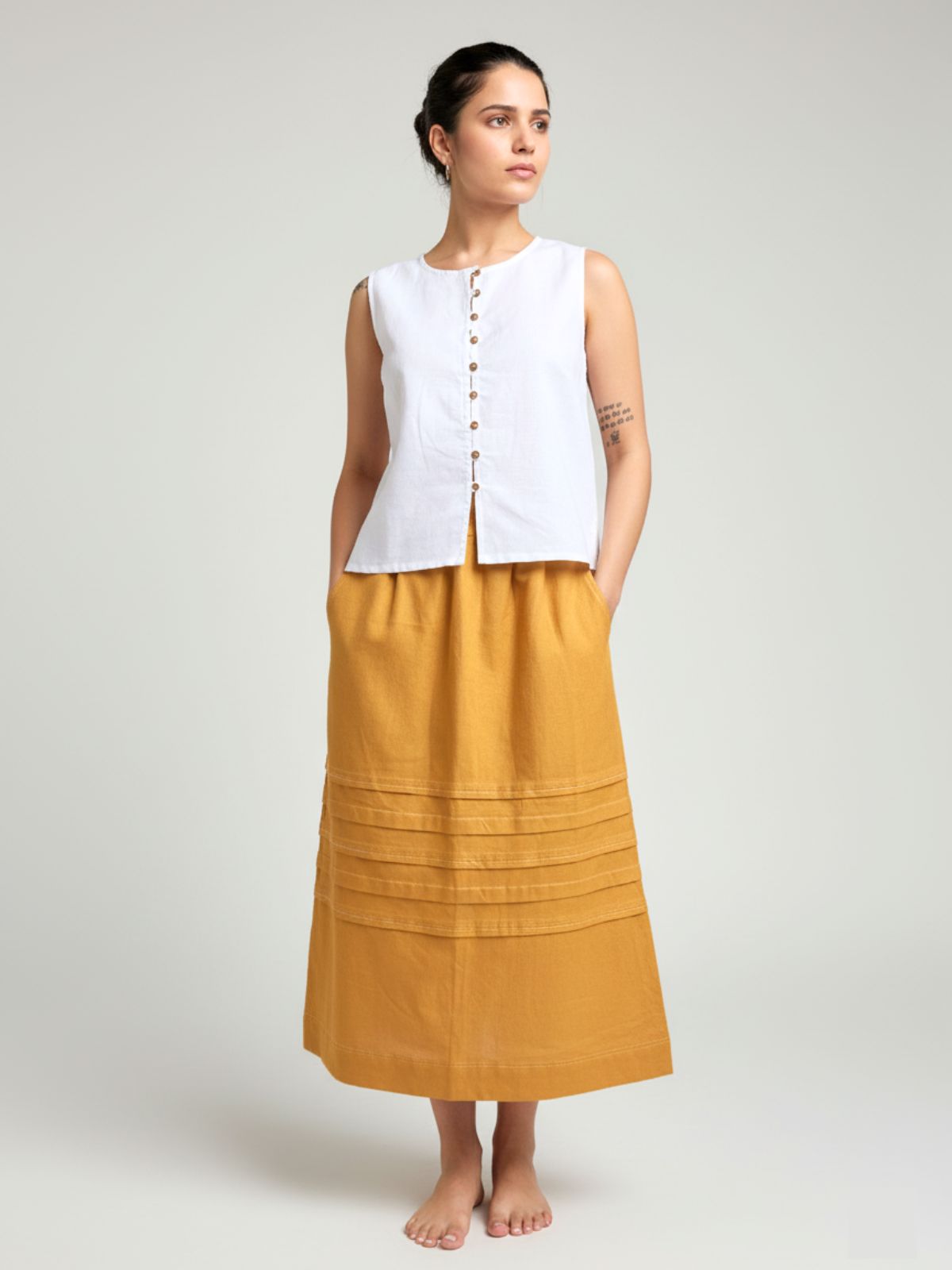 Archie Mustard Embroidered Maxi Skirt with Pockets