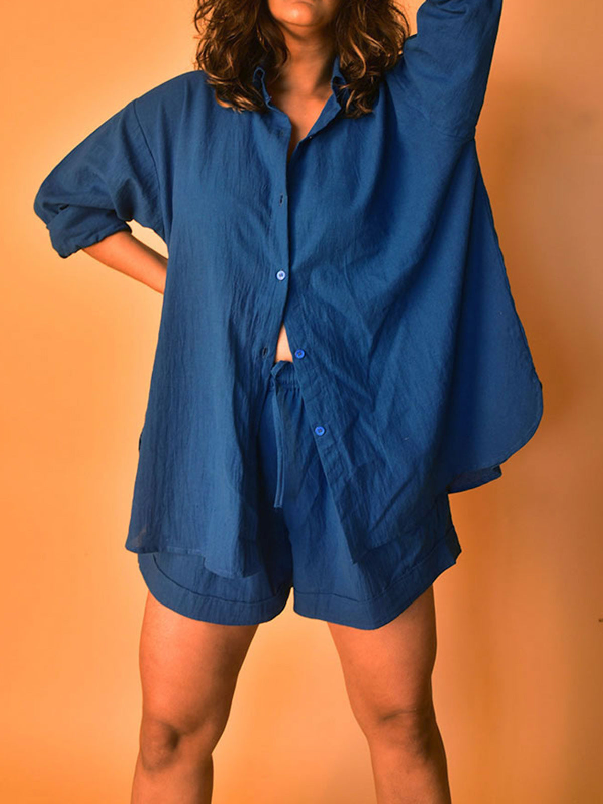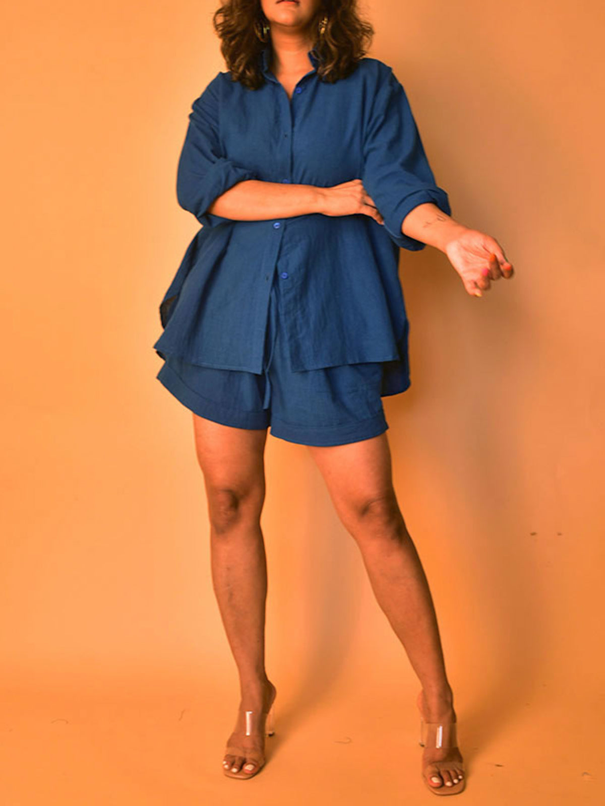 The epitome of timeless elegance and comfort. Crafted from eco-friendly dyed kaala cotton, these classic monochrome shorts feature an elasticated waist and drawstring tie-up for a customizable fit. With convenient pockets on both sides, they combine style with functionality. Embrace sustainability and quality craftsmanship proudly Made in India, while exuding effortless sophistication with every wear.