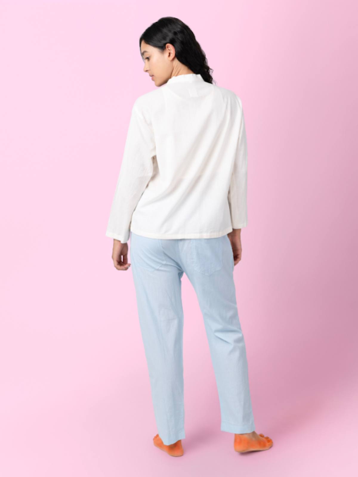 • Pair Palazzos with Ethnic Tops: For a traditional look, pair our airy palazzos with a printed or embroidered kurta. Add a statement necklace, and you’re ready for a festive occasion or a family gathering.