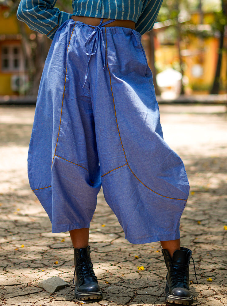 Inspired by effortless travel and timeless style, our Blue Drawstring Pants bring together the comfort of harem-style silhouettes with contemporary details. Designed in a relaxed freesize fit, they feature a drawstring waist for adjustable comfort and contrasting yellow piping that adds a refined finish. Side pockets and soft, breathable fabric make them ideal for day-long wear—whether you're lounging, exploring, or dressing up for a casual event.