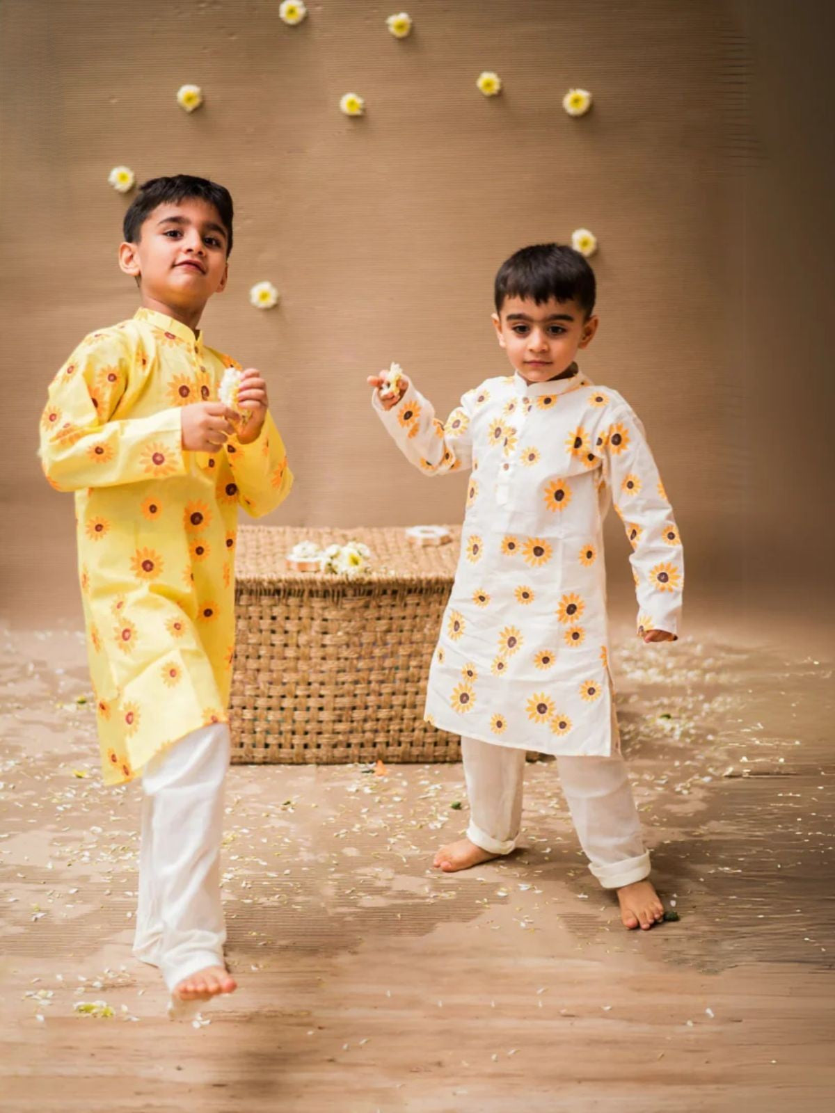 Introduce your child to effortless elegance with this thoughtfully crafted kurta pajama ensemble. Constructed from pure cotton, the set delivers exceptional softness and breathability perfect for daily activities, festivals, and cherished occasions. The classic kurta features button closures and hand screen-printed nature-inspired motifs, while the coordinating pajamas offer an elastic waistband for unrestricted comfort. Chemical-free dyes ensure safety for sensitive skin. Available in sizes 1-8 years, this versatile piece balances cultural authenticity with contemporary comfort.