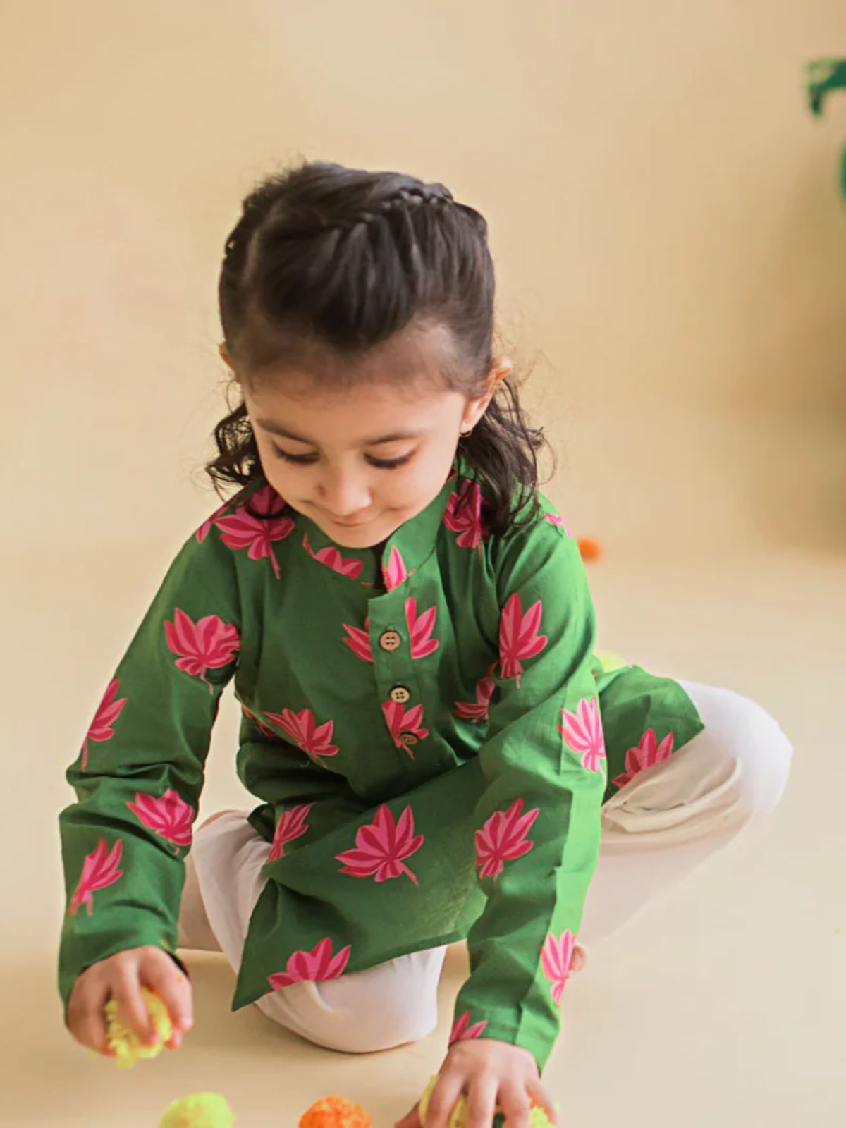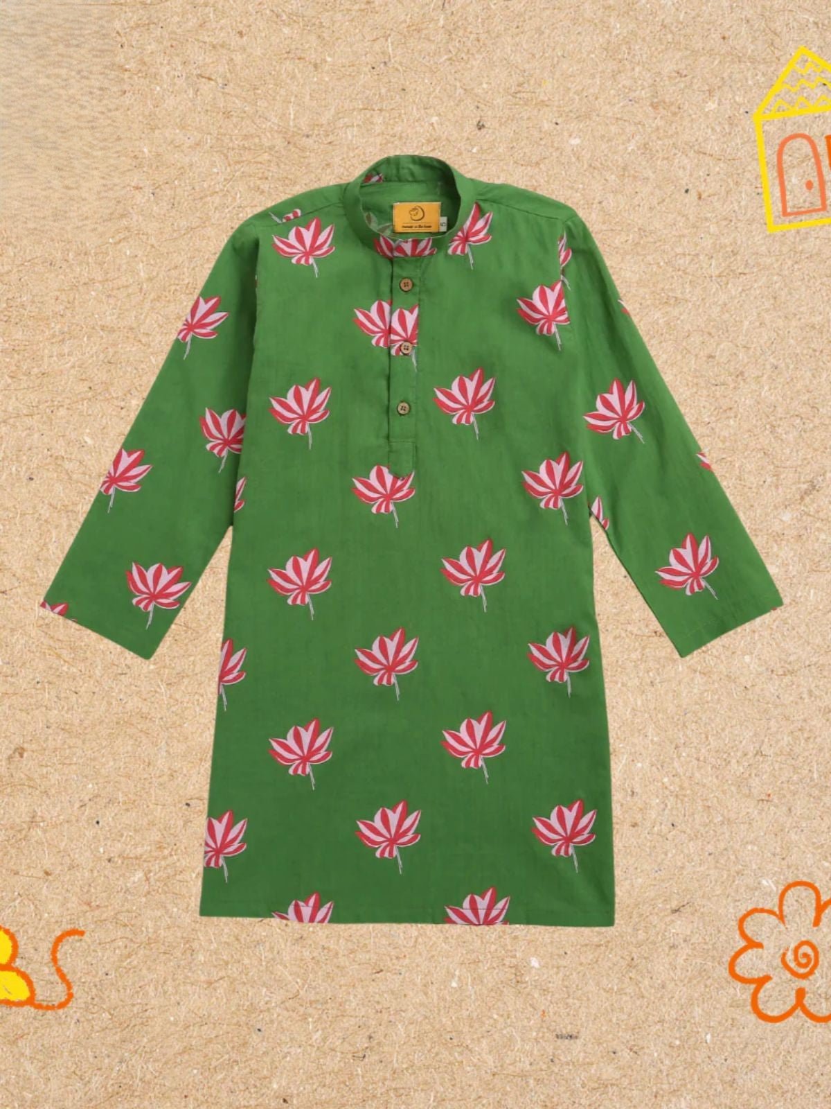 Introducing the Lotus Bloom Kurta Pajama Set—where traditional craftsmanship meets modern comfort for young boys. This thoughtfully designed ensemble features a classic buttoned kurta paired with soft beige pajamas, crafted entirely from 100% pure cotton that's gentle on sensitive skin and naturally breathable. The adaptive design eliminates unnecessary tags and seams while offering easy-open necklines for hassle-free dressing. Each piece is hand screen-printed with exclusive botanical motifs using chemical-free, non-toxic dyes, ensuring both safety and sustainability. Available in sizes 1-8 years with custom options upon request, this versatile set transitions seamlessly from everyday wear to special occasions. The soft elastic waistband provides all-day comfort, while the handcrafted quality means every garment is uniquely one-of-a-kind.
