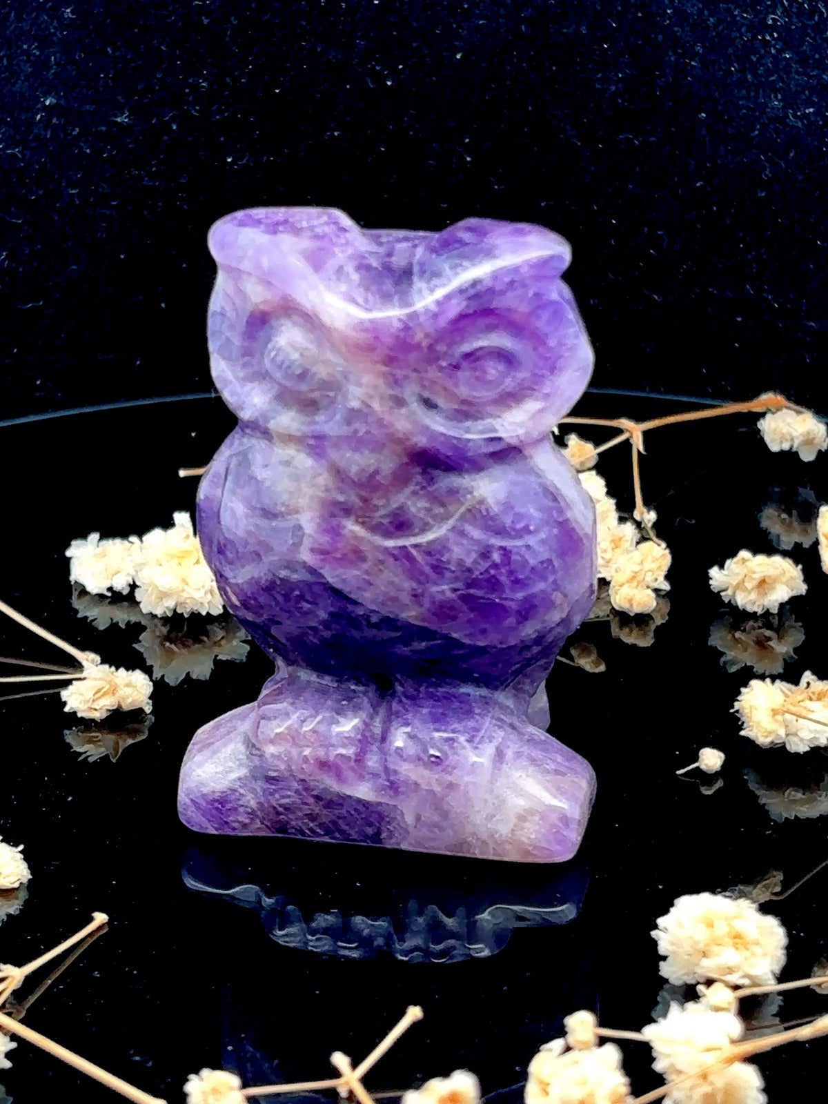 This Amethyst Owl represents intuition and spiritual insight. Hand-carved to symbolize inner wisdom, it's ideal for restful spaces and mindful décor.