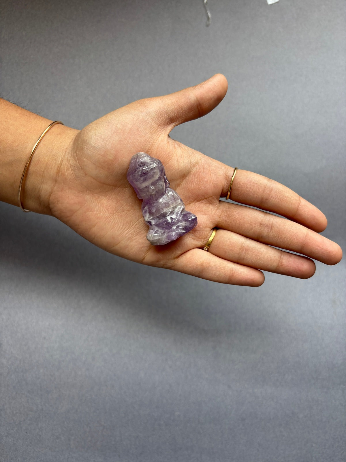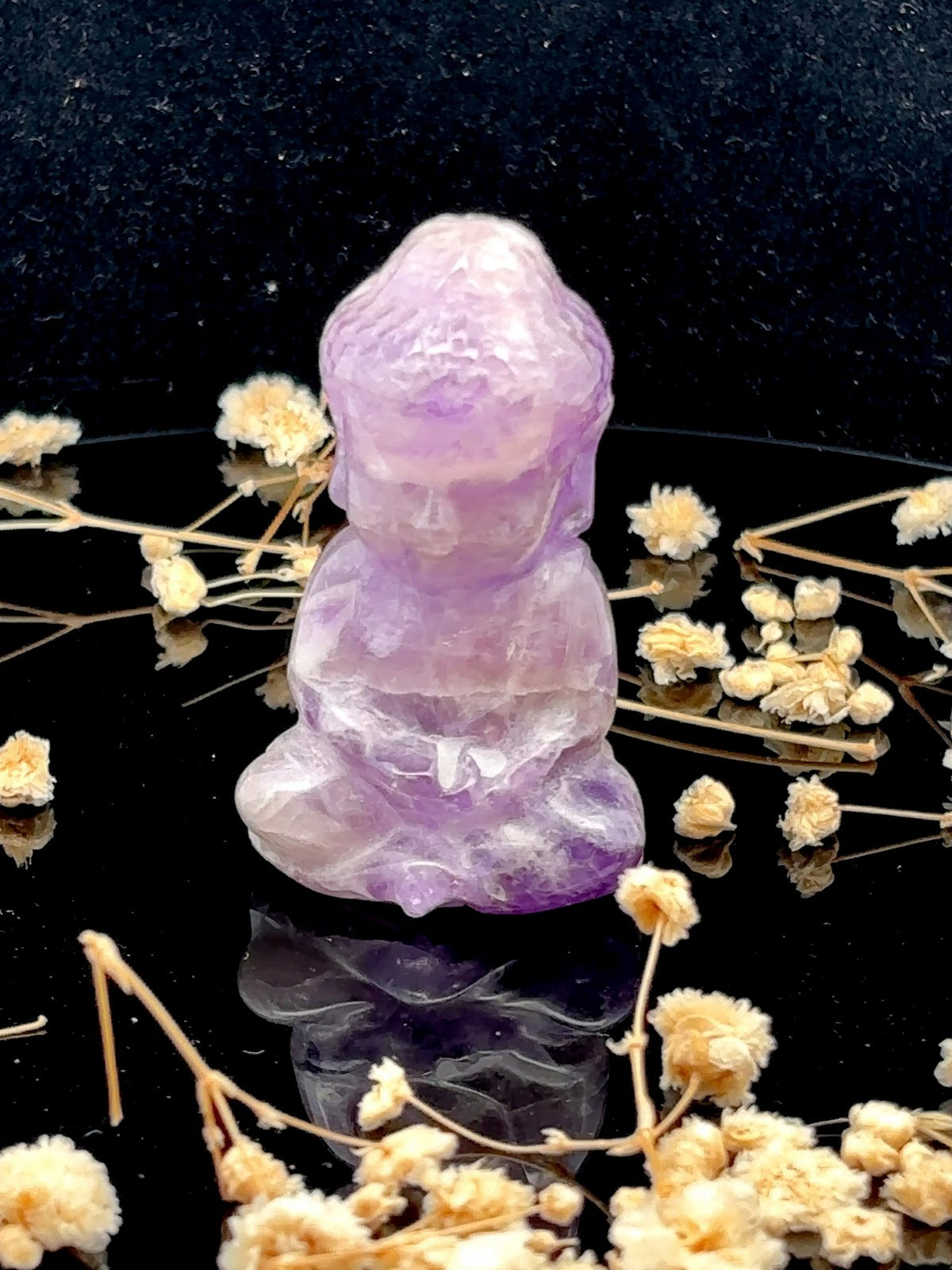 Calm and contemplative, this Amethyst Buddha enhances spiritual awareness and tranquility. A centerpiece for calm, centered energy.