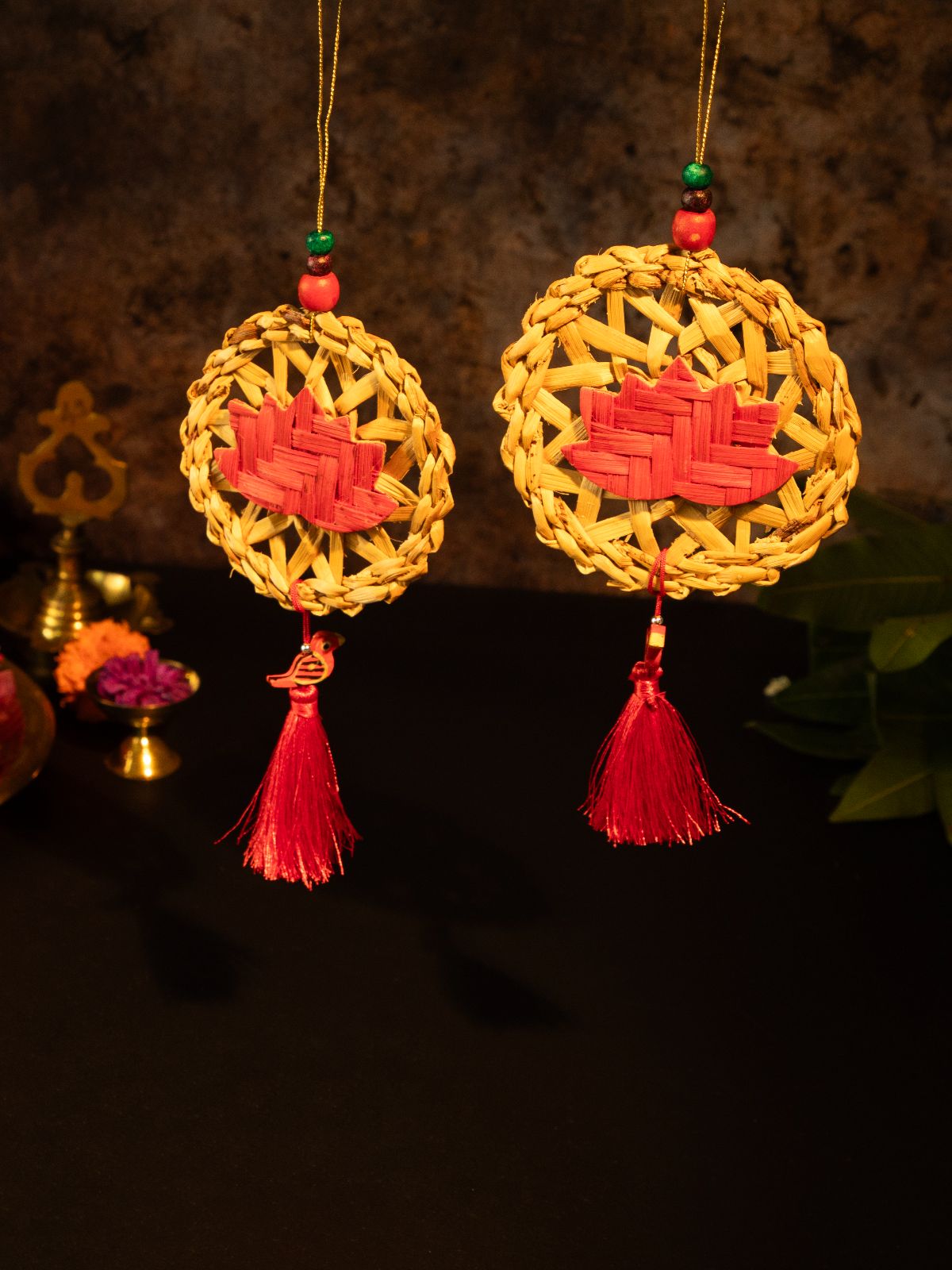 Chakra Lotus Handcrafted Banana & Bamboo Hanging - Set of 2