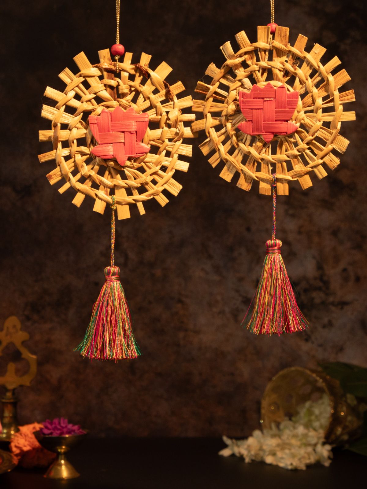 Mandala Lotus Handcrafted Banana & Bamboo Hanging - Set of 2