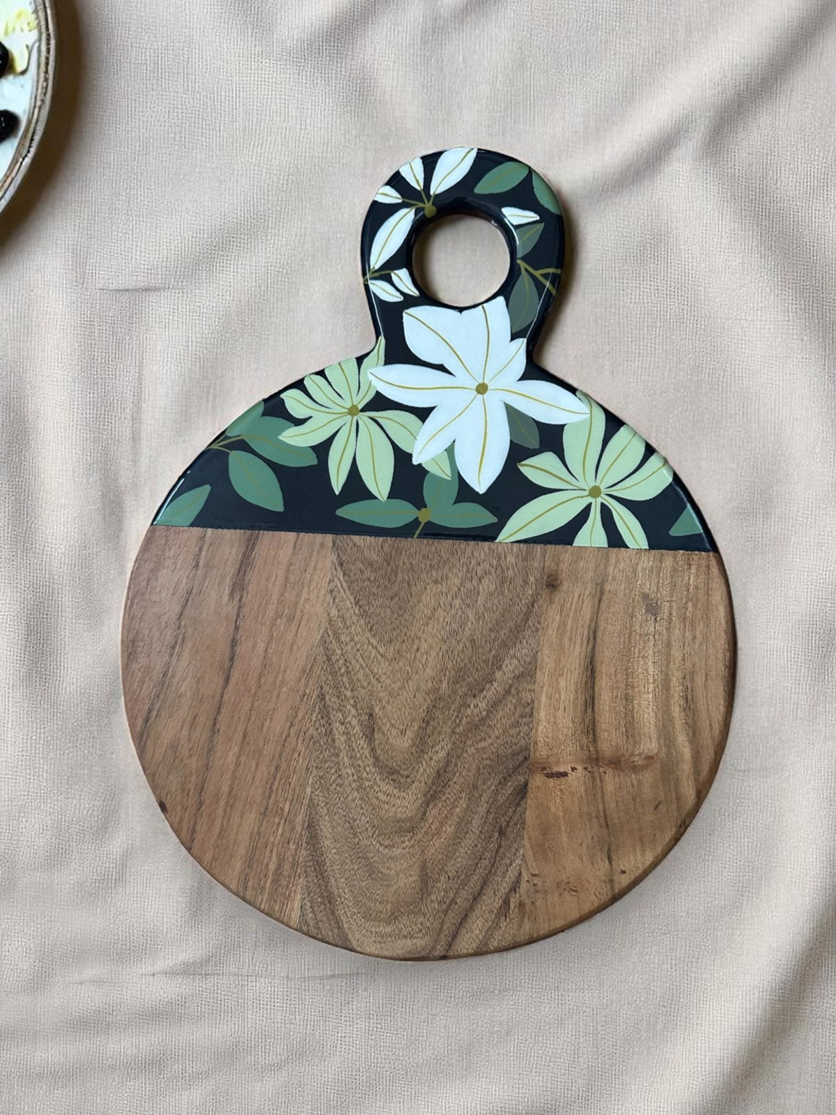 A handcrafted wooden chopping board with smooth edges and a natural finish, perfect for everyday kitchen use. Designed for durability and elegance, it blends functionality with artisanal charm.