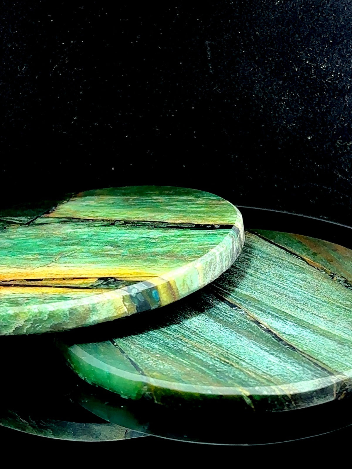 With silvery-olive shimmer, Green Mica reflects natural vitality and earthy richness. These radiant coasters are believed to support resilience and growth—both grounding and luminous in presence.