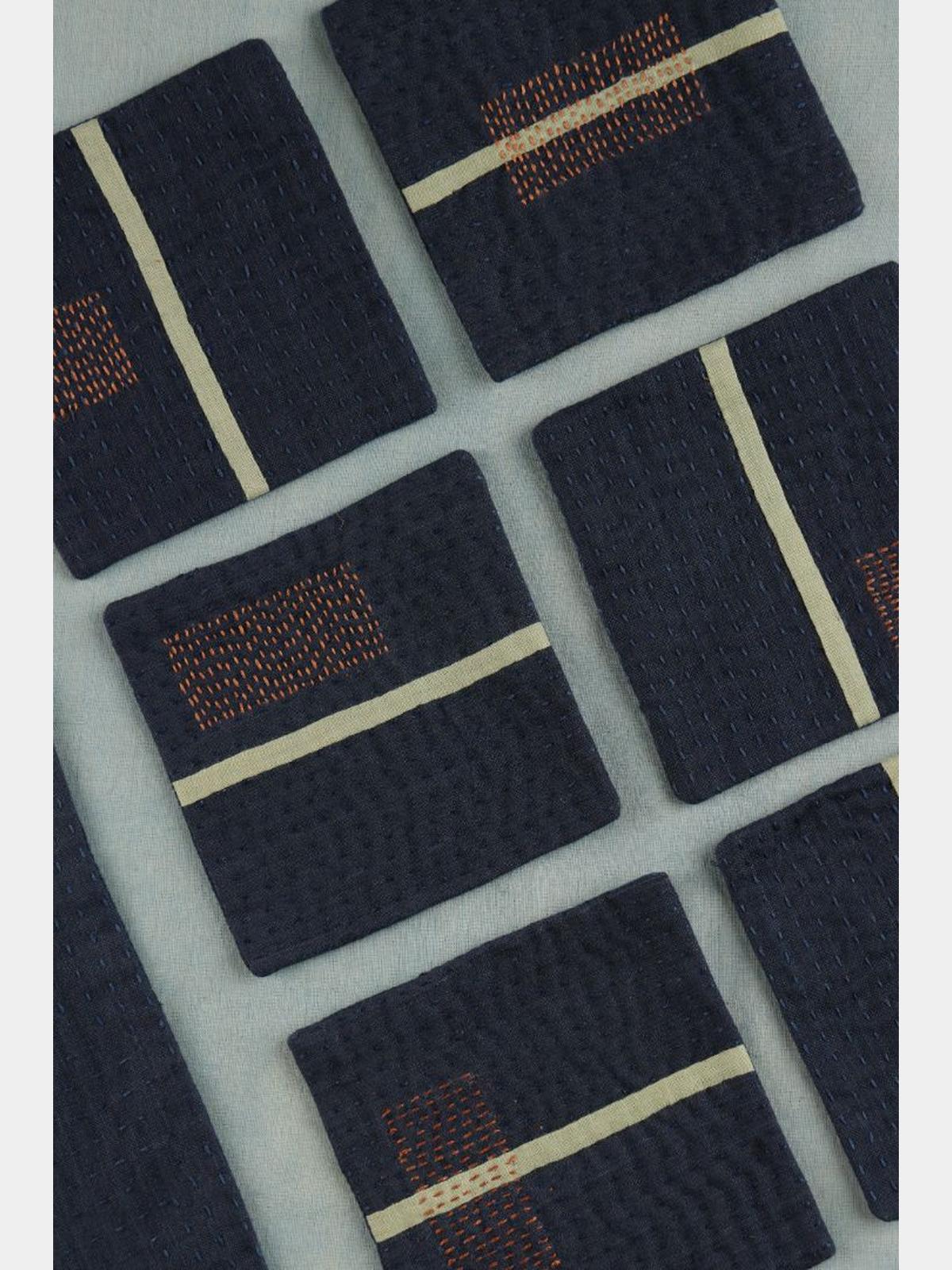 Setu Coasters (Set of 4) are meticulously crafted from handloom cotton, showcasing exquisite hand-done Kantha embroidery and delicate applique details. Each coaster reflects traditional artisanal techniques, offering both durability and a refined aesthetic. Designed to protect your surfaces while adding a touch of cultural elegance, these coasters blend functionality with handcrafted artistry, making them a sophisticated addition to any home or office setting. Their unique texture and intricate patterns highlight the skill of skilled artisans, ensuring each piece is one-of-a-kind. Ideal for enhancing your dining experience with subtle, timeless charm.