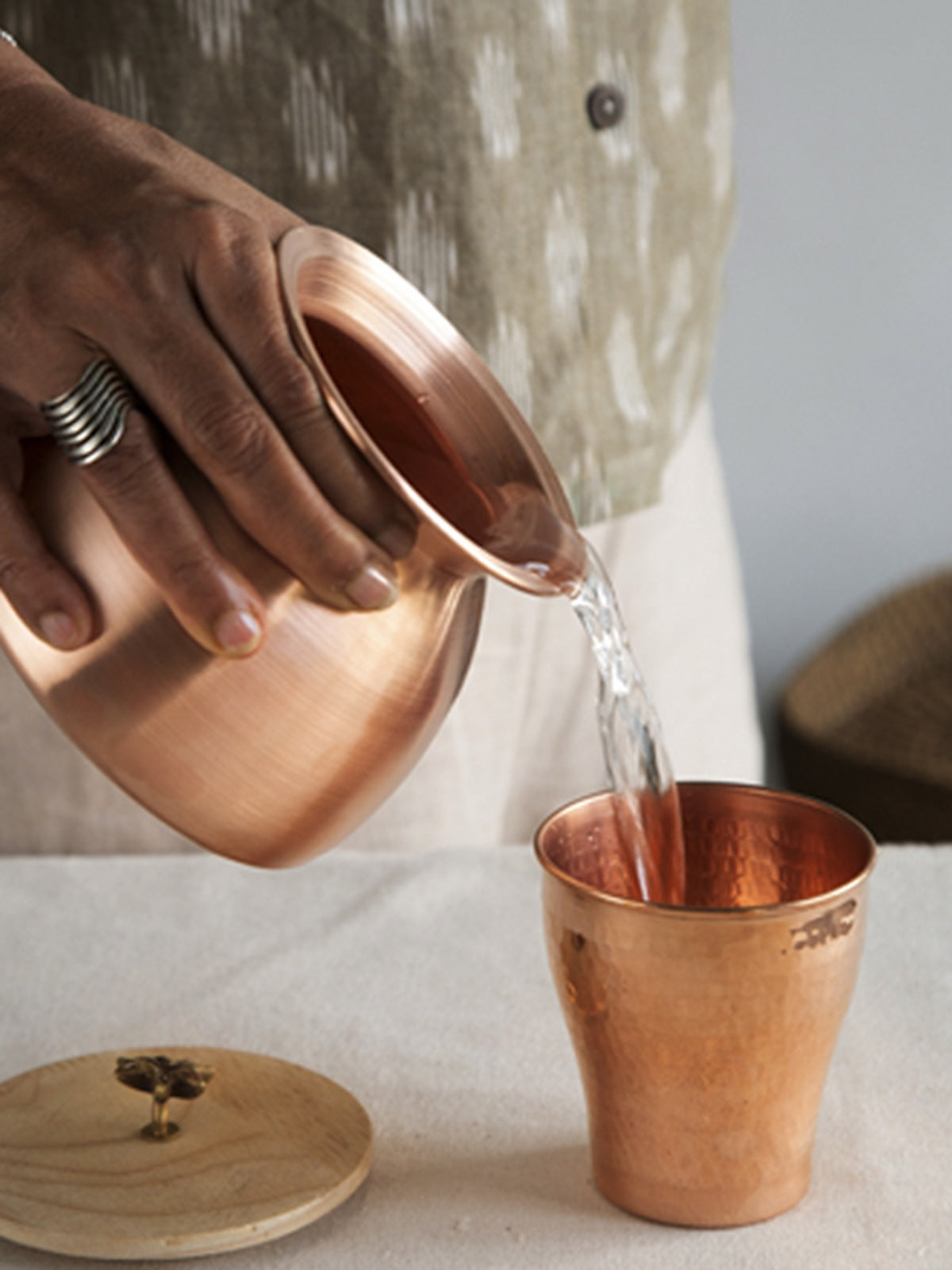 • Material: Copper Lota With A Wooden Lid & Brass Motif