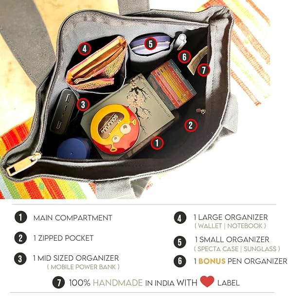 This uber cool handmade by artisans Tote bag for women with this interesting handmade kantha patchwork design comes with a main zippered closure. It has a zippered pocket on one side. The lining inside is made with soft cotton. It has two handles made from soft upcycled canvas on the top. Flaunt it with pride as you are supporting & nurturing the craftsmanship while protecting the environment.