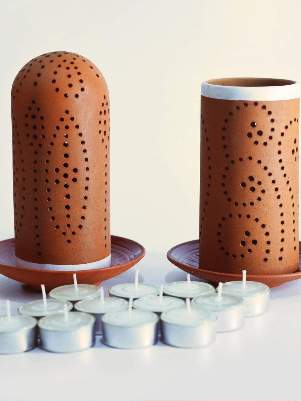 Elegant terracotta candle diffuser with handcrafted perforations that cast a delicate glow. Made by West Bengal artisans, it adds soothing ambience to modern and traditional spaces alike—an effortless way to create calm, candle‑lit moments.