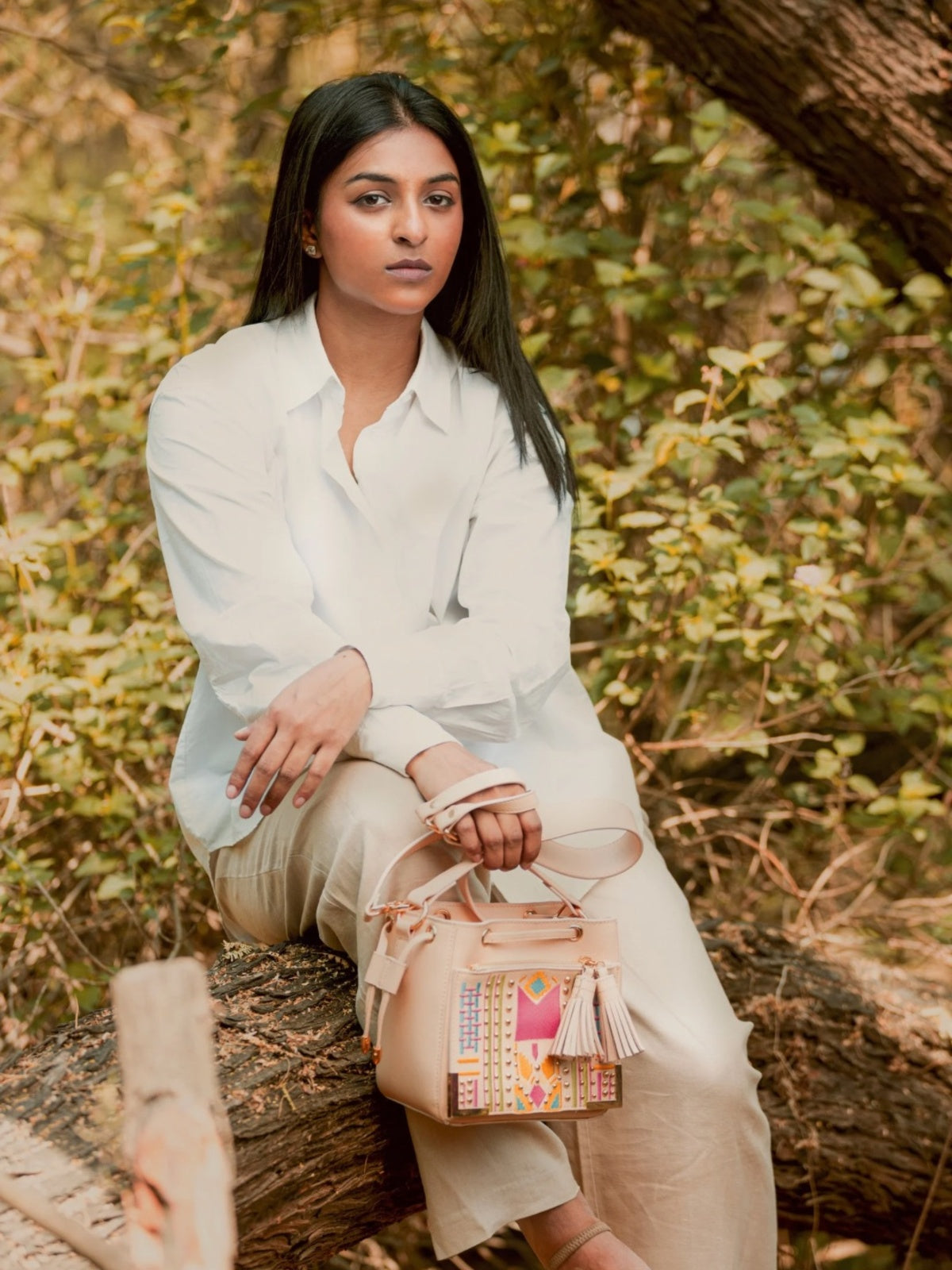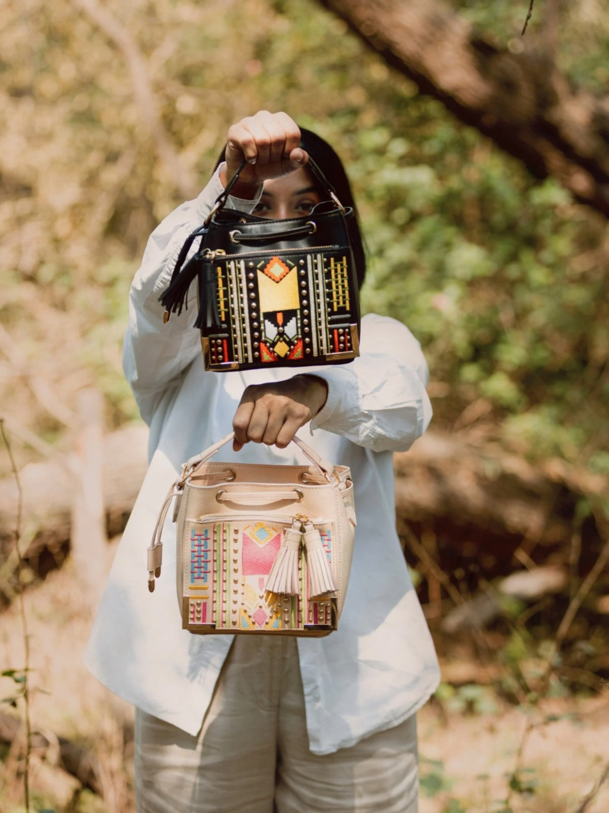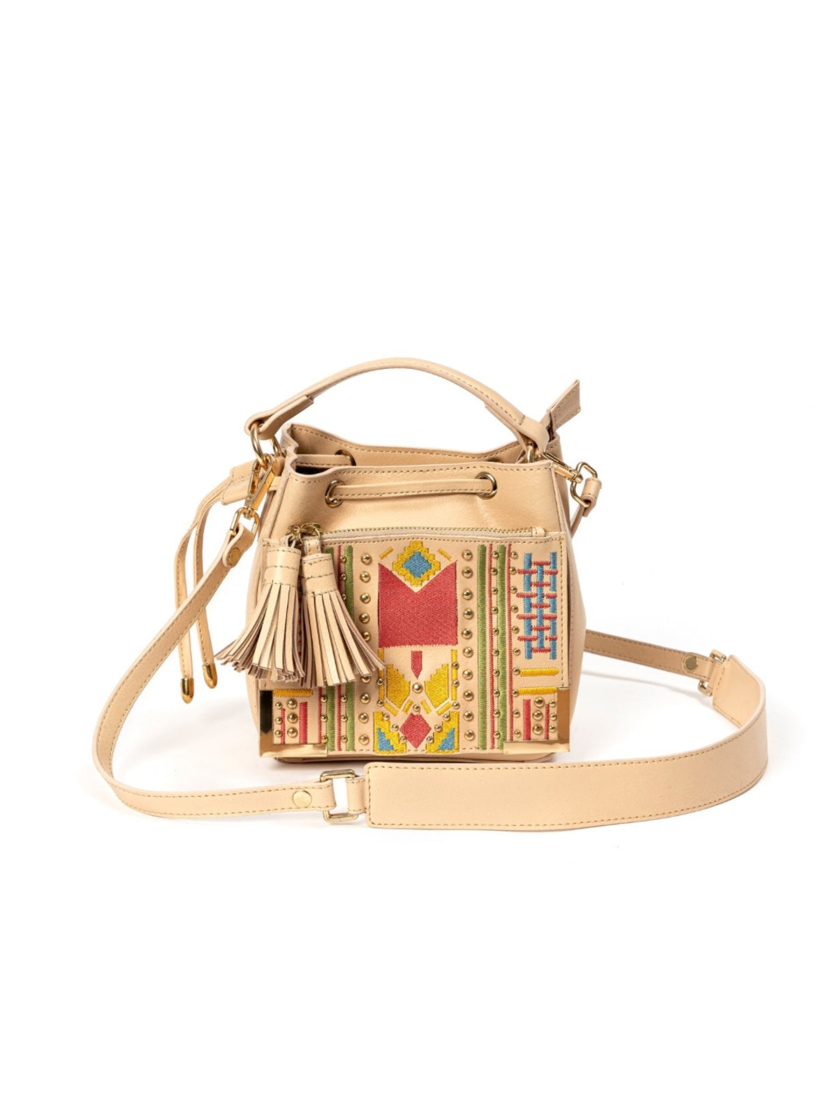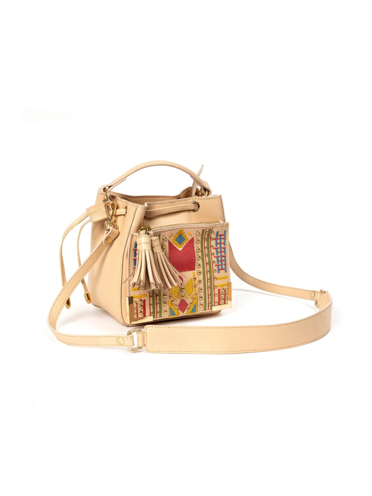 The Nora Sling in Almond blends artisanal embroidery with cruelty-free vegan leather, creating a striking boho-inspired piece. Thoughtfully designed for the style-conscious, it is lightweight, compact, yet spacious enough for daily essentials. With tassel accents and an adjustable strap, it transitions seamlessly from daytime outings to evening celebrations.