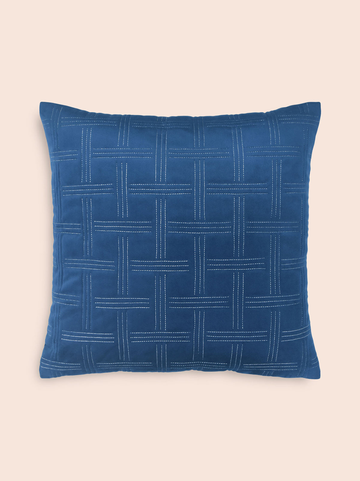 A simple yet maximal pattern. The cushion cover is designed with a weave pattern to create a unique and abstract print. The dark blue colour of the cushion cover makes it a great fit for white and minimal interiors. Can be easily washed at home either by hand or by machine. Made of pure velvet.
