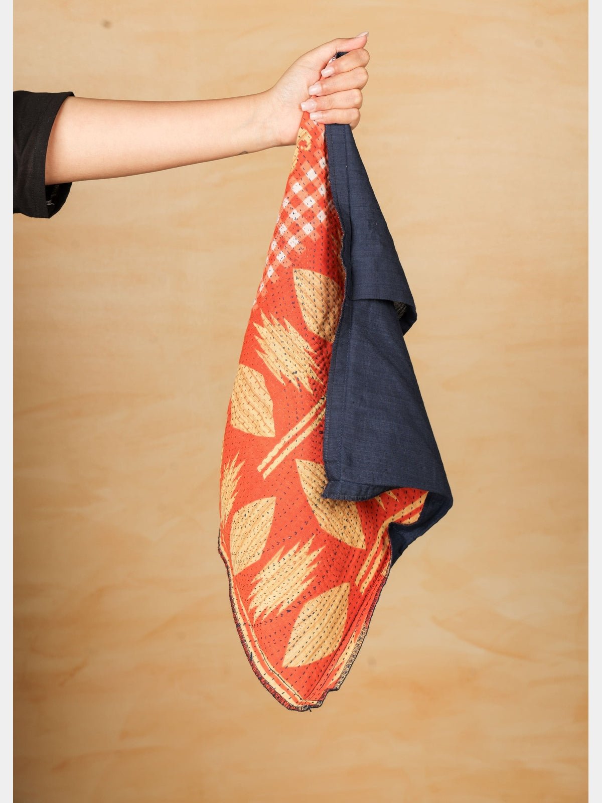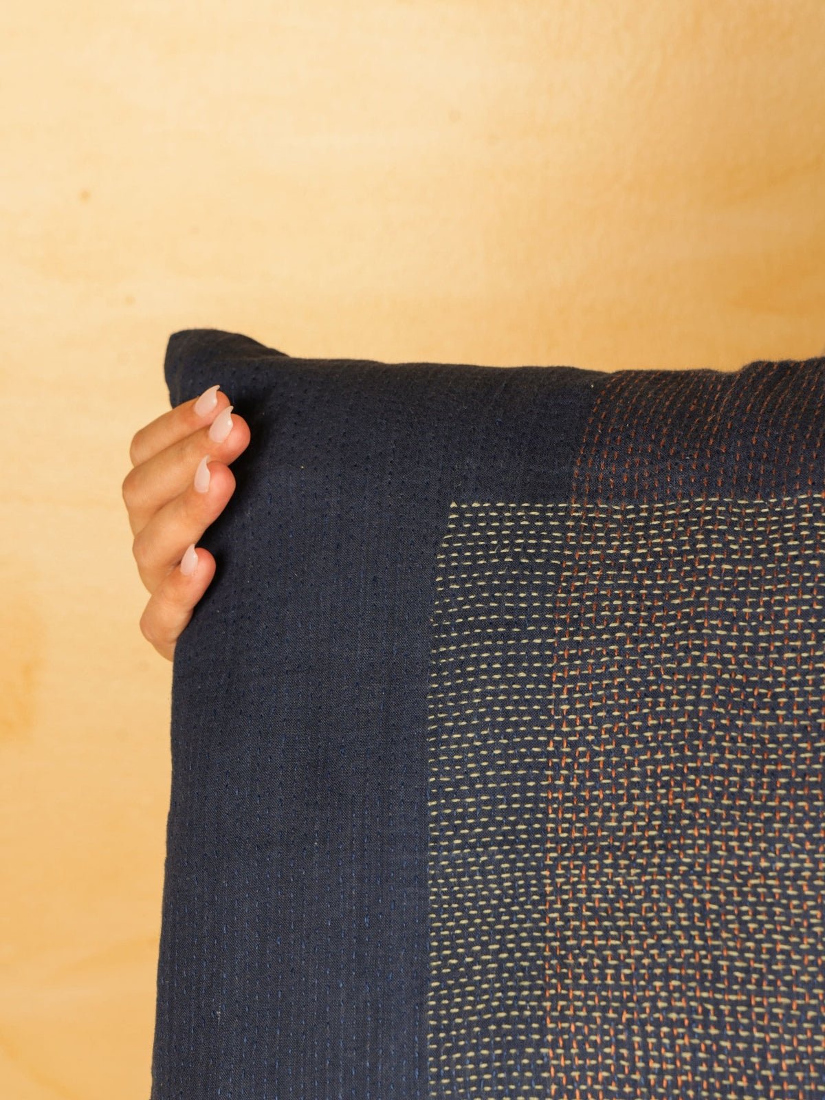 This Bokeh cushion cover is crafted from handloom cotton, offering a soft yet durable texture ideal for everyday use. It features intricate hand-done Kantha embroidery, showcasing skilled craftsmanship and adding a unique, artisanal touch to your home decor. The cushion cover is thoughtfully lined with layers of vibrant recycled sarees, enhancing its visual appeal while promoting sustainable practices. Perfect for adding a splash of color and cultural richness to any living space, this cushion cover combines traditional techniques with eco-conscious materials for a distinctive and elegant accent.