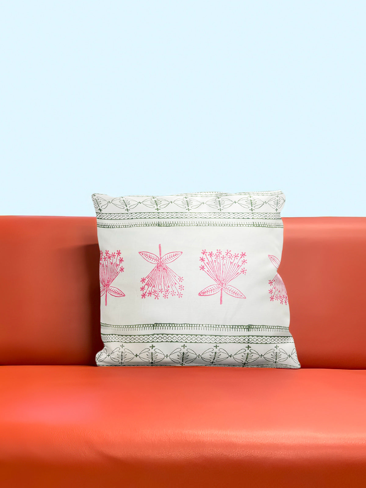 This is an exquisite Hand Block Printed Cotton Cushion Cover meticulously crafted by the skilled women artisans at Alankaran Designs. Each cover embodies tradition, craftsmanship, and empowerment, adding more than just decoration to your home. Handblock printing is a traditional craft skill which involve enormous precision and labour. Each colour impressions are made by stamping the hand carved wood blocks on to the fabric with a correct amount of pressure and colour. All impressions are coordinated with each other to achieve a beautiful pattern. The slight imperfection in pattern is the natural beauty of this handicraft. Adorn your home with this beautiful handmade cushion cover to achieve the aesthetics with value.