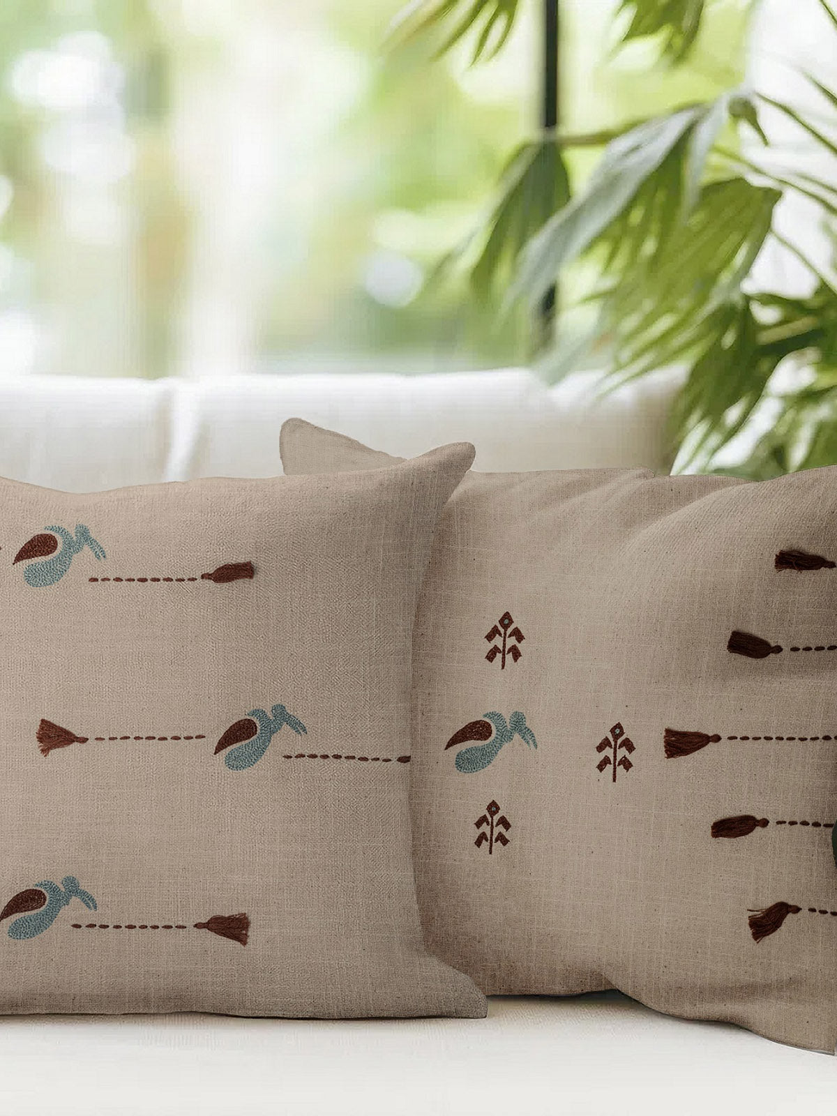 Hargila birds are migratory birds of Assam and are on the verge of being extinct. To conserve them, we have developed wall arts and cushion cover collection using hargila as motifs on beautiful cotton fabric to spread the message and save the birds. These motifs are hand embroidered by the cluster of Assamese workmen with proud. Please note: 1. It is handwoven hence there could be slight variations in the colour, texture, design and finish. 2. No Fillers included.