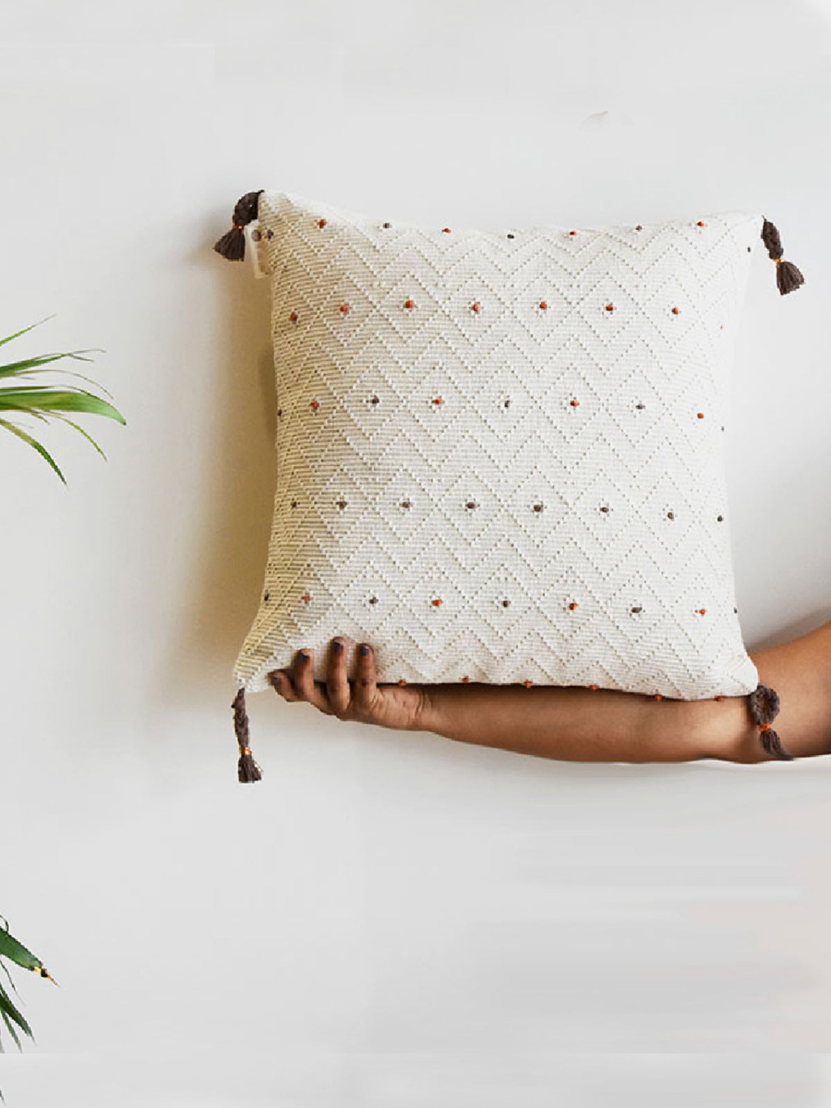 “Saanjh” is a collection that takes its colours and mood from the alluring beauty of setting sun. This collection aims to create the feel of warm spaces of serenity. Simplicity and delicacy in pattern creation with just minimal lines is the core of this collection. Extra addition of textures to this line is the breathing beauty of this collection. This cushion is a perfect example of tradition meets modernity. Classic woven pattern with handcrafted coloured dots to catch the attention of everyone in your living space.