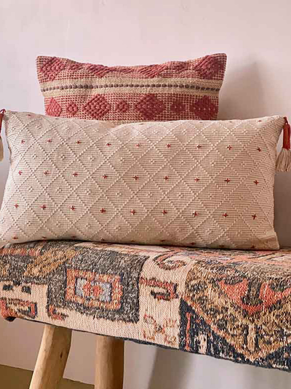 Saanjh Dotted Geo Lumbar Cushion Cover Natural And Terra